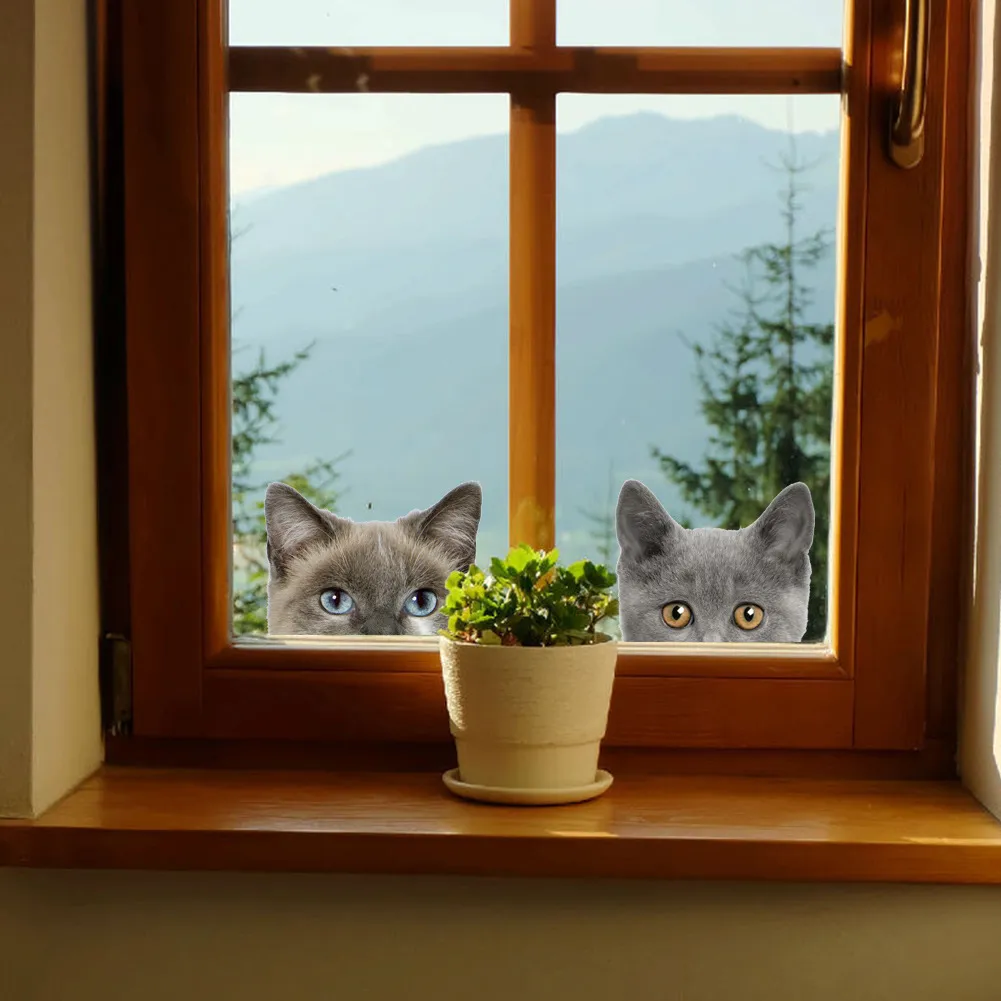 Funny 3D Cat Dog Half Face Peeking Car Stickers - 5 Stickers