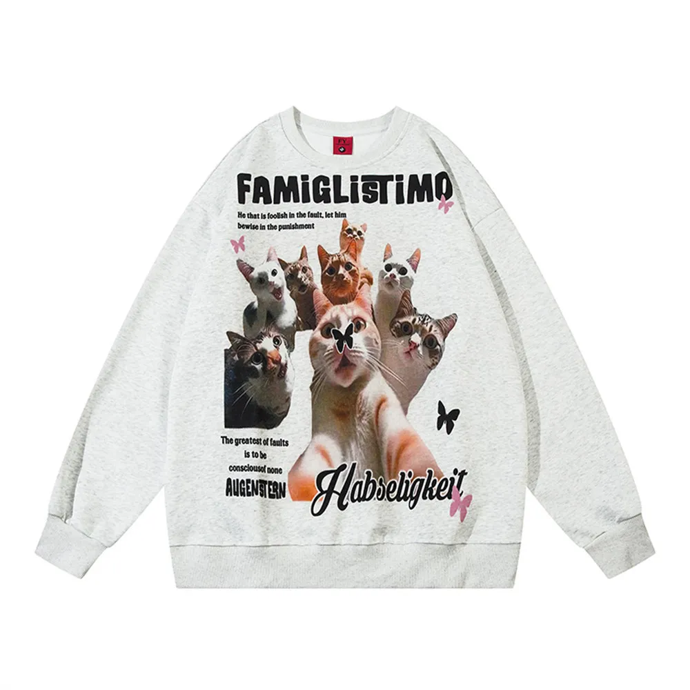 Funny Kitten Printed Crew Neck Sweatshirt: The Perfect Humorous Gift for Daughters