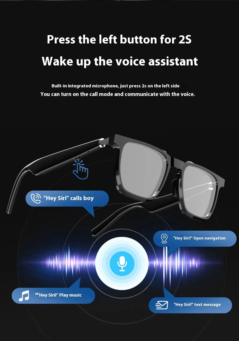 G01-09 Bluetooth Glasses Sunglasses Black Technology Can Call To Listen To Music Audio Smart Bluetooth Glasses