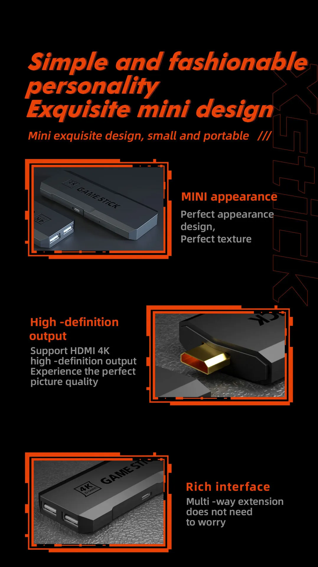 The Gamestick is a compact, portable gaming console designed to bring the excitement of gaming wherever you go. With its sleek design and powerful features, this handheld device provides a seamless gaming experience for all ages. Whether you're at home, traveling, or hanging out with friends, the Gamestick lets you enjoy your favorite games on the go, delivering high-quality entertainment at your fingertips.