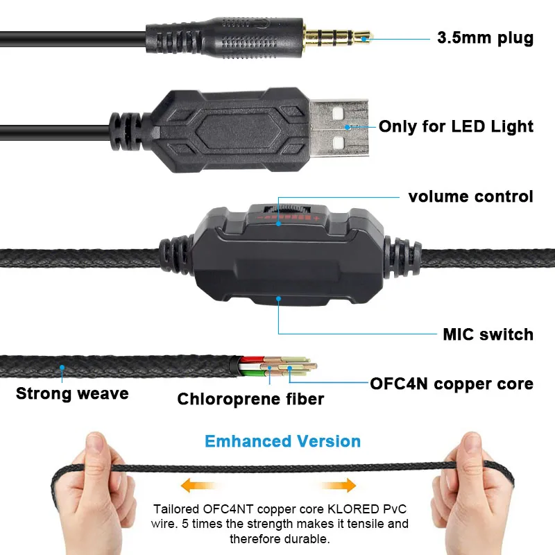 The headset is built with durable materials to withstand the rigors of intense gaming. Its sleek, modern design is also equipped with customizable LED lighting, adding a futuristic touch to your gaming setup.