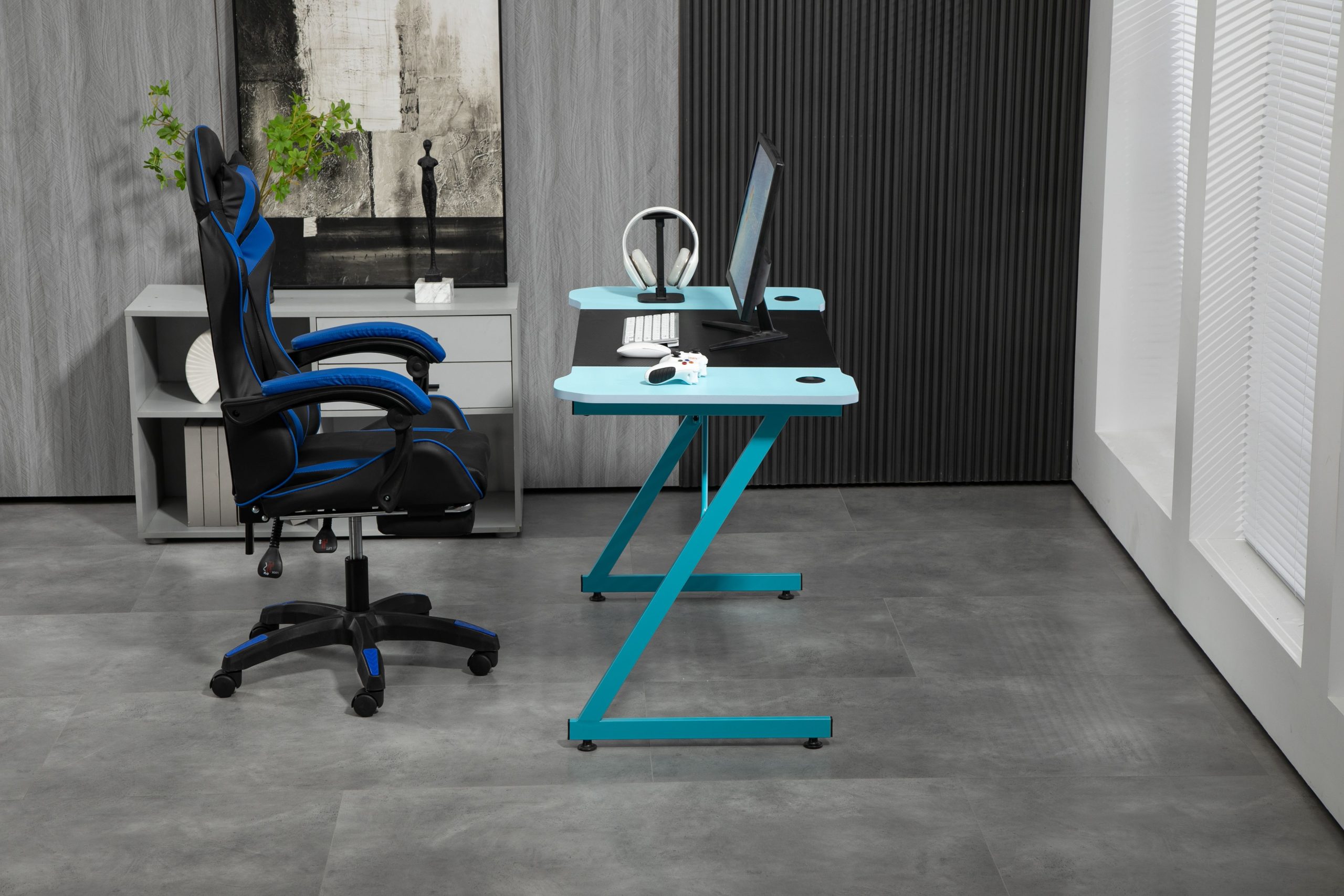 Sleek and Stylish: Featuring a modern design with clean lines and a sleek finish, this desk adds a touch of sophistication to any room. Its versatile appearance makes it suitable for both gaming setups and professional office environments.