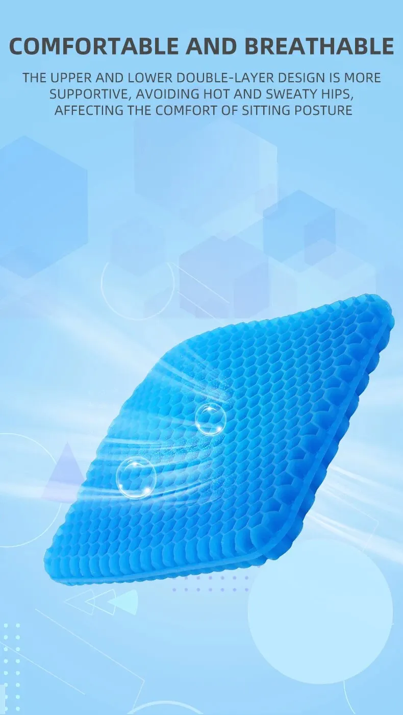 hips. Its breathable design allows air to flow freely, keeping the cushion cool and comfortable even in hot weather. The gel material