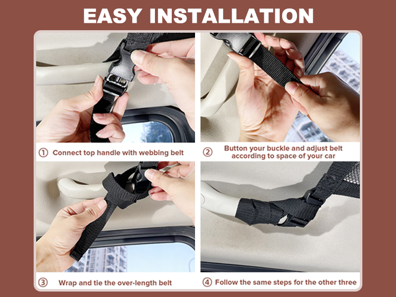 The cargo net pocket comes equipped with 4 fixing buckles and adjustable straps, allowing you to easily secure it to the car ceiling within 5 minutes