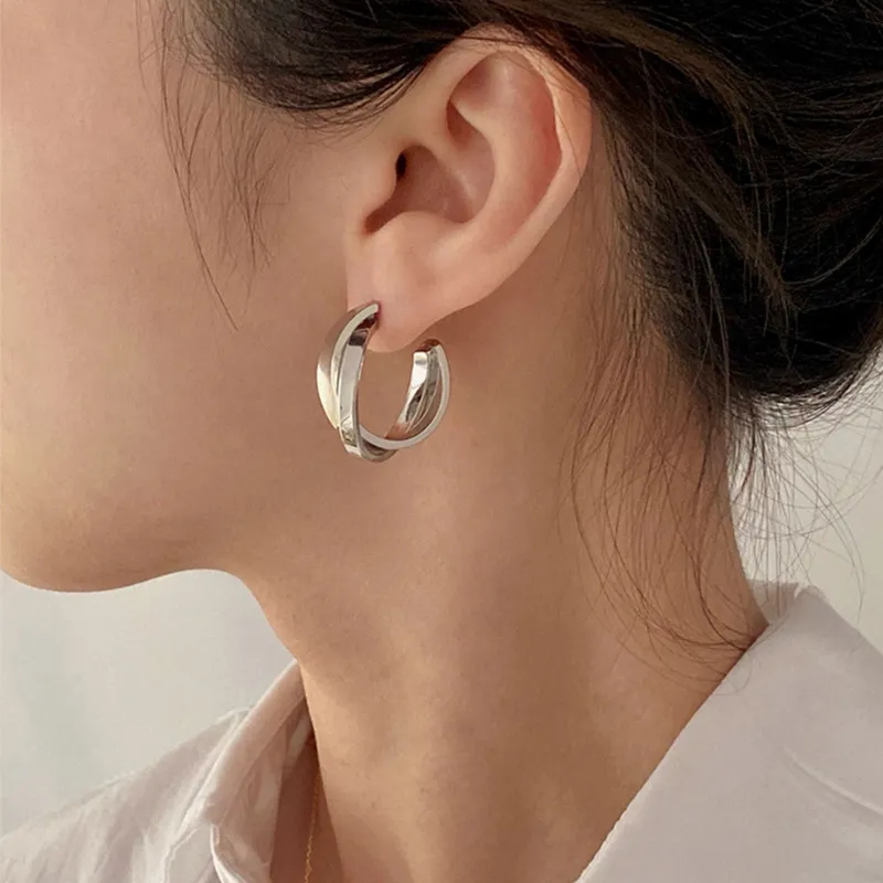 Geometric Double Hoop Earrings Luxury Minority High Sense Ear Ring