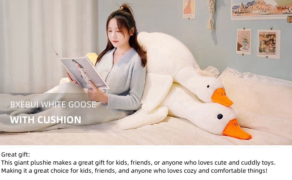 - 3.【Enjoy Comfortable】:The big white goose stuffed toy symbolizes purity, beauty and warmth. When you come home from a day's work to snuggle with the white goose, relax your neck and back, to bring you happy moments