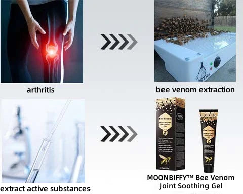 - Melittin in bee venom has a strong anti-inflammatory effect, which can reduce the inflammatory response of arthritis, thereby reducing joint pain and swelling, and improving joint mobility