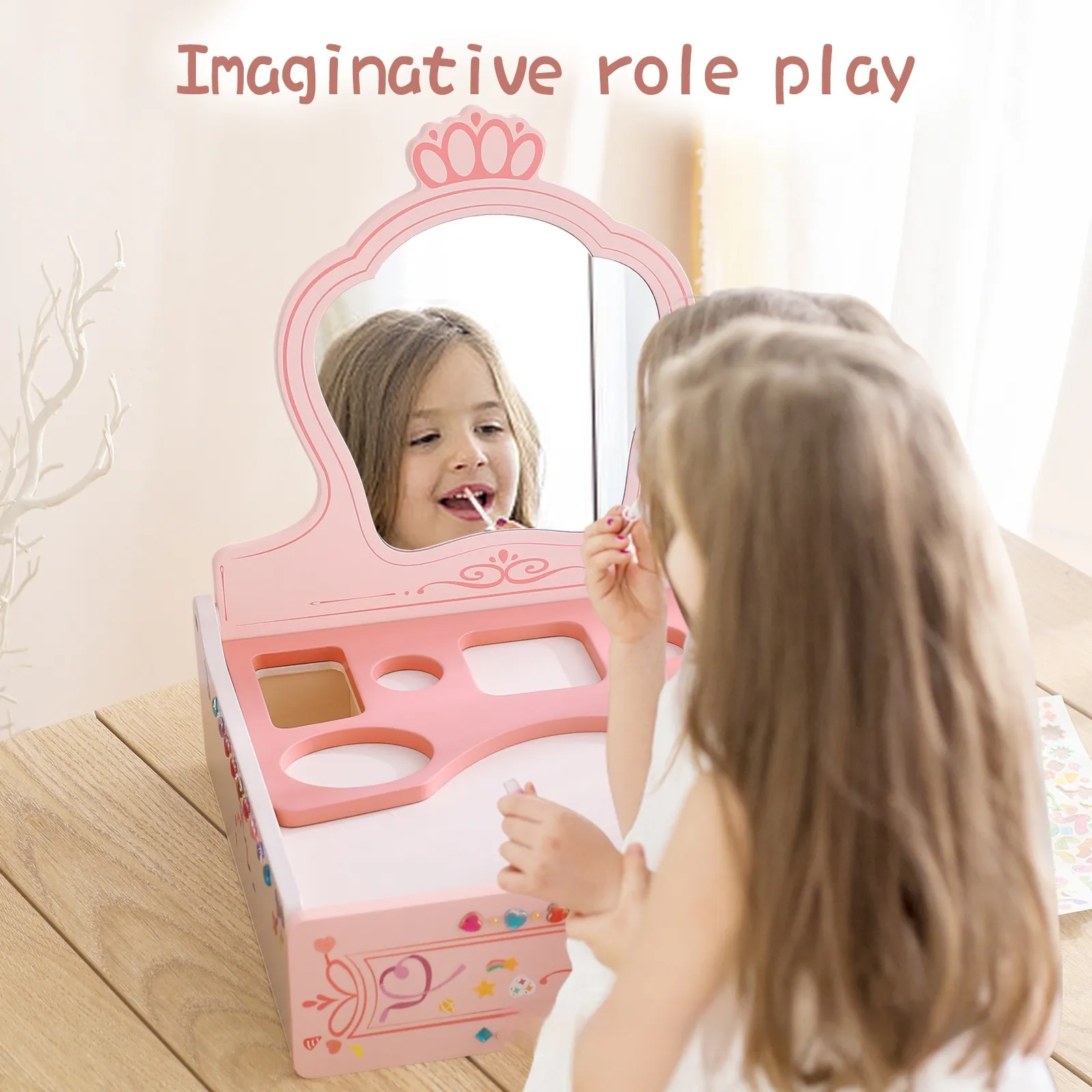 Girl Princess Play House Makeup Toys Small DreGirl Princess Play House Makeup Toys Small Dressing Table Wooden Children's Pink Mirrorssing Table Wooden Children's Pink Mirror