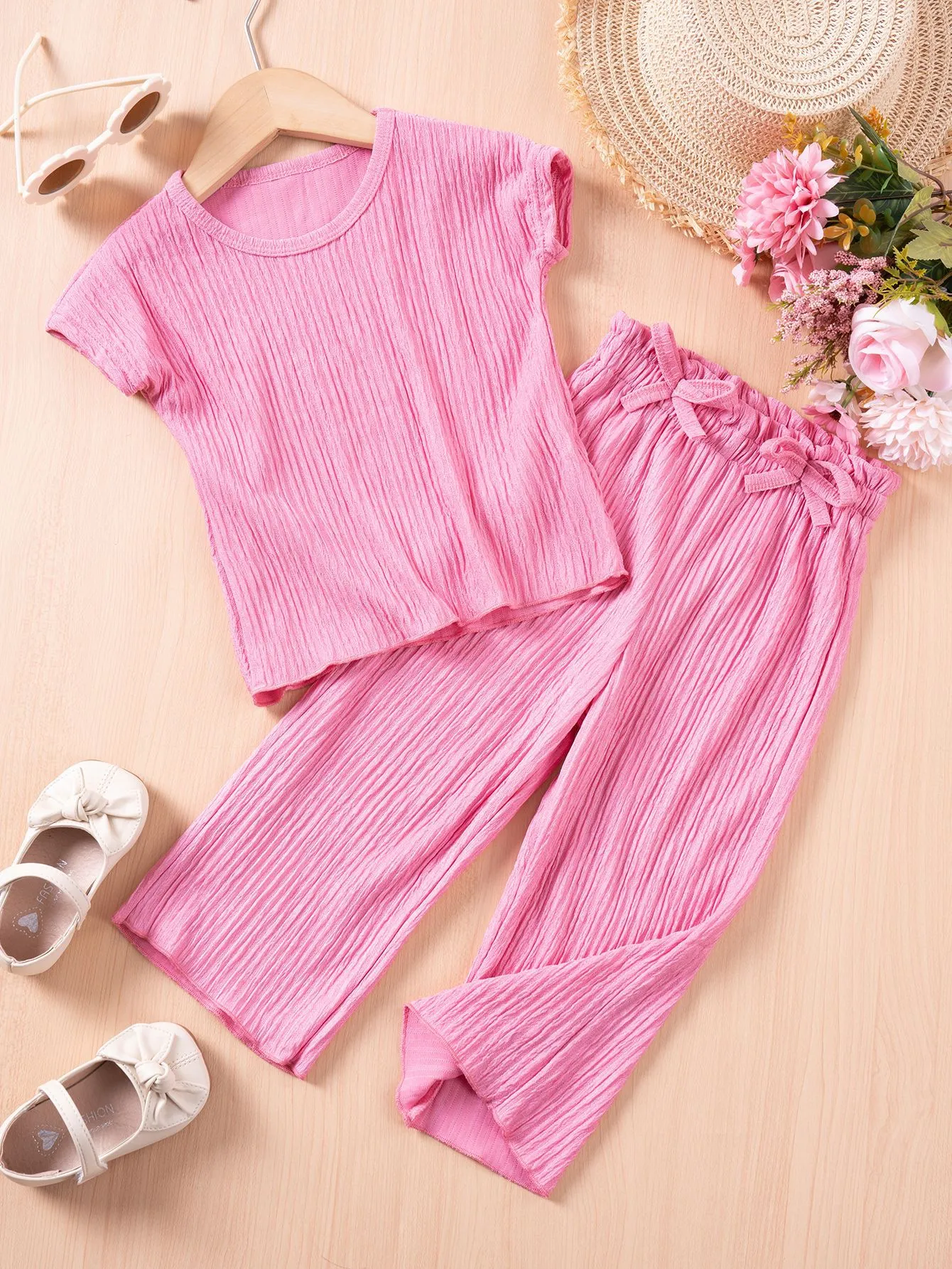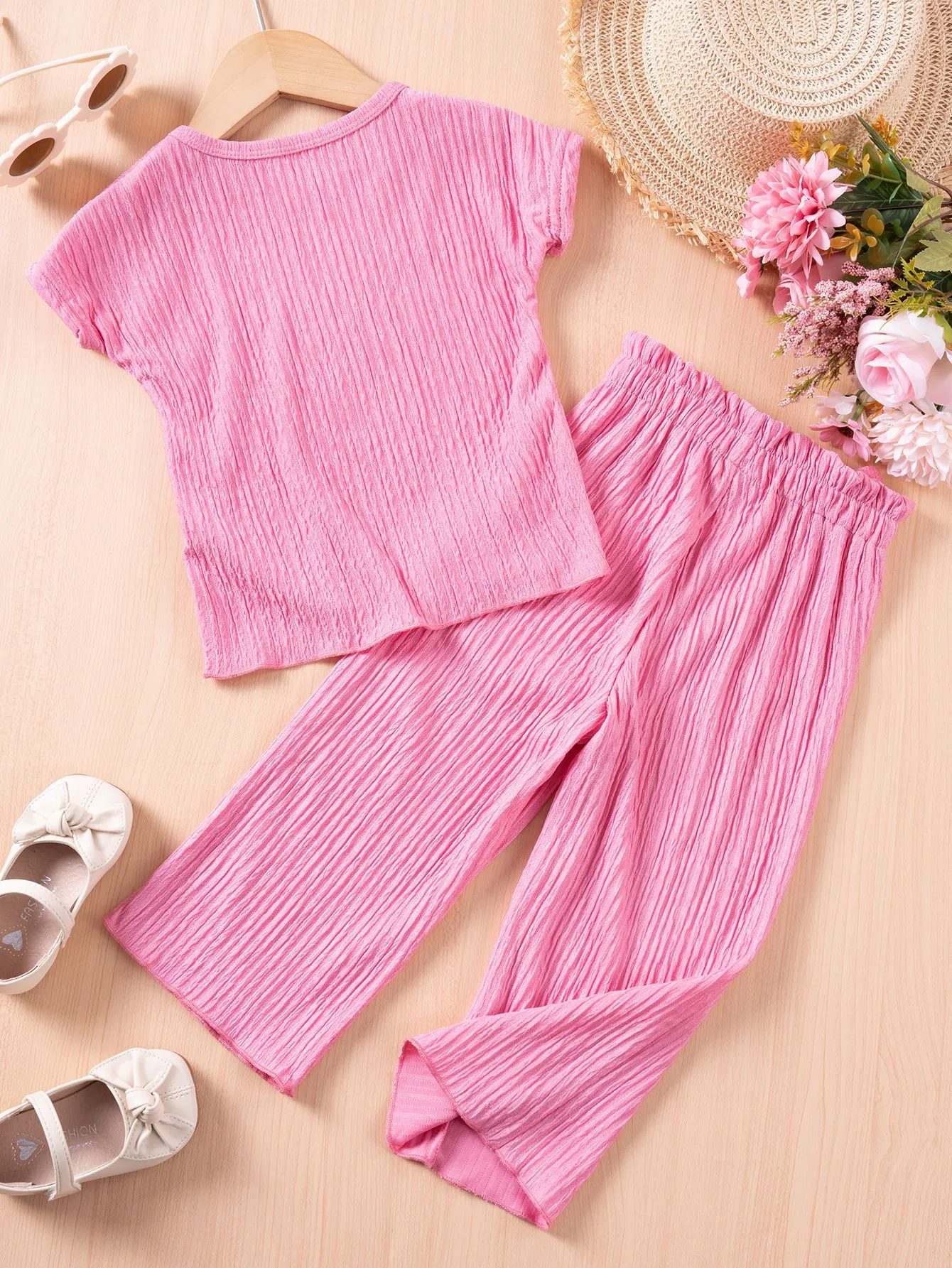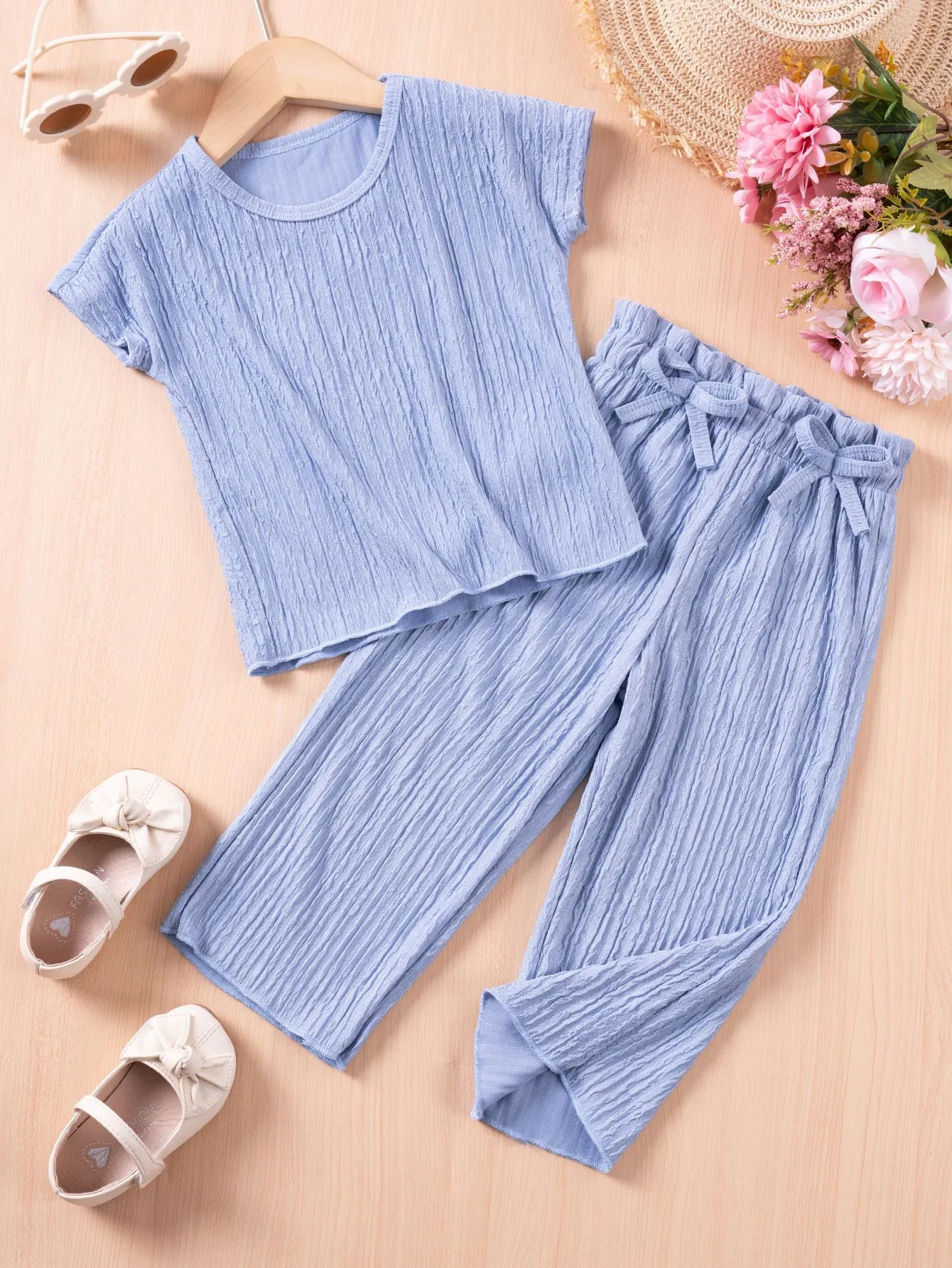 Girls Casual Style Solid Color Short Sleeve Trousers Suit – Chic & Comfortable for All Occasions