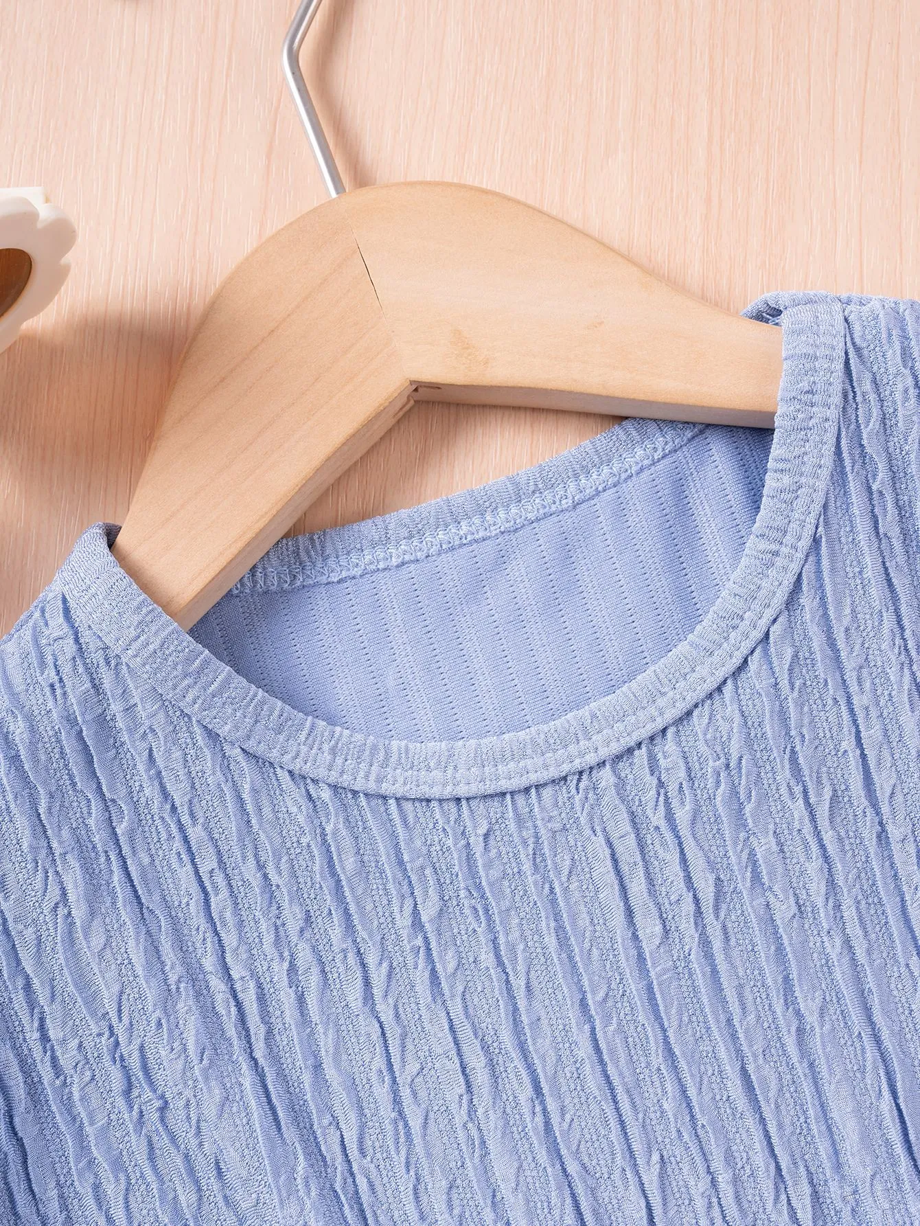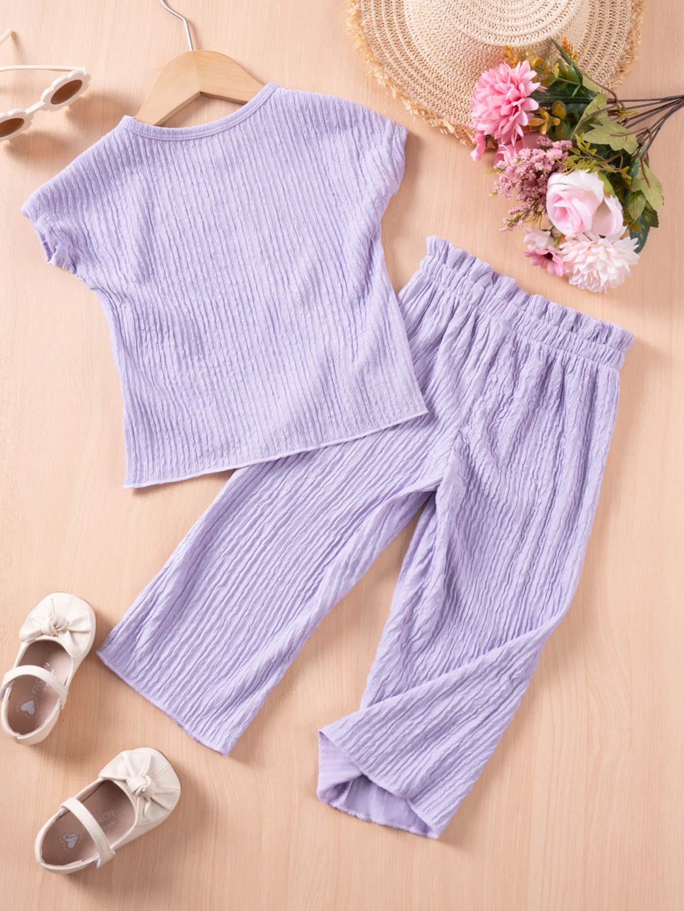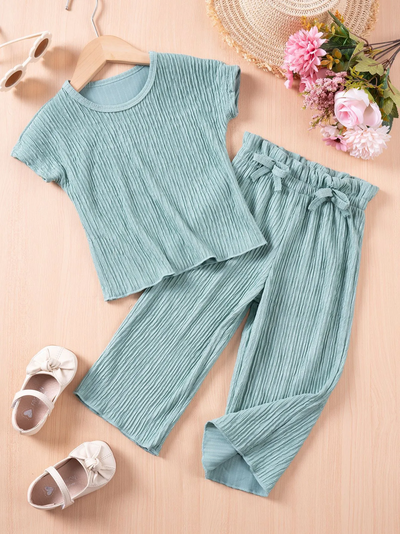 Girls Casual Style Solid Color Short Sleeve Trousers Suit – Chic & Comfortable for All Occasions