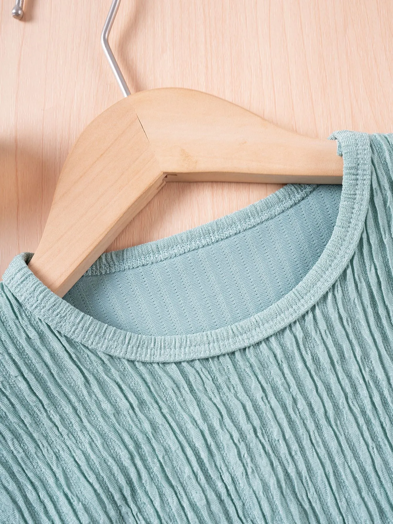The solid color short sleeve top and matching trousers offer a minimalist yet trendy look. The elegant design pairs easily with accessories, jackets, or sneakers, allowing for versatile styling options.
