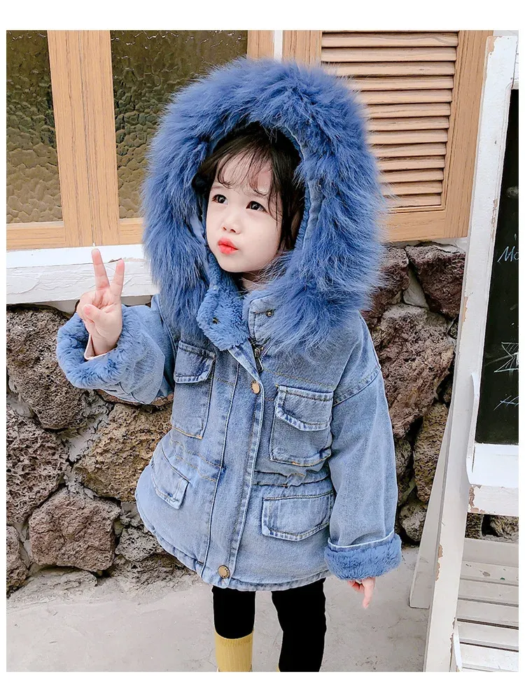 denim with plush velvet lining makes it a cozy, stylish, and practical option for any girl who loves to stay warm without compromising on