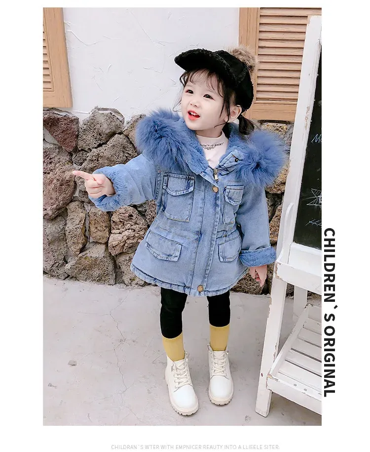 The stylish design of this denim plus velvet jacket makes it an excellent choice for family photoshoots, ensuring your little one looks great while staying comfortable and warm.