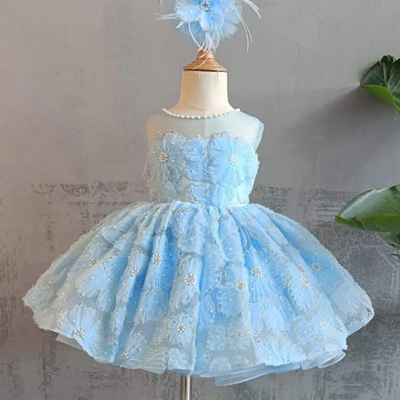 👗 Girl’s Blue Super Fairy Pettiskirt – Piano Performance Dress