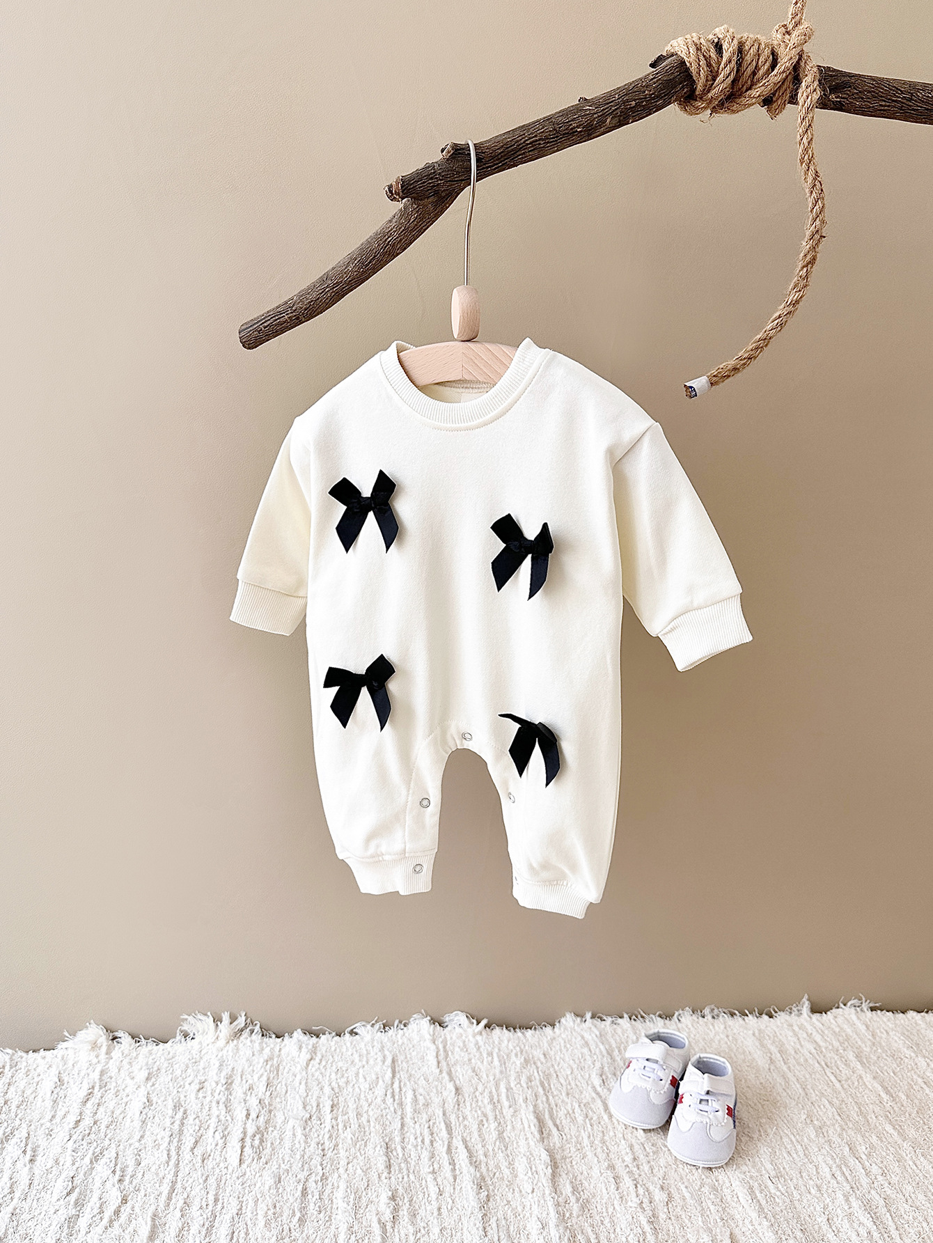 Made from soft, breathable fabric, the Girls' Fashion Personalized Bow Round Neck Jumpsuit ensures that your little one stays comfortable