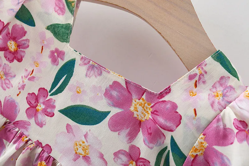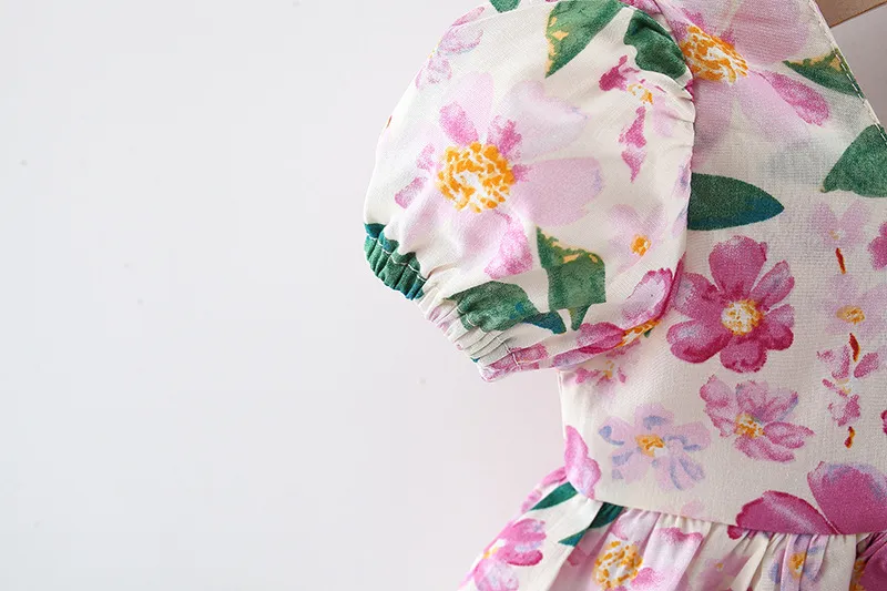 This short sleeve dress features a stunning floral print that brings a sense of freshness and charm to any occasion. The intricate floral design adds a playful and feminine touch, making it an ideal choice for birthdays, family gatherings, or any day where your child wants to dress up. The bright and cheerful colors make it easy to pair with various accessories, such as a cute headband or a pair of ballet flats.