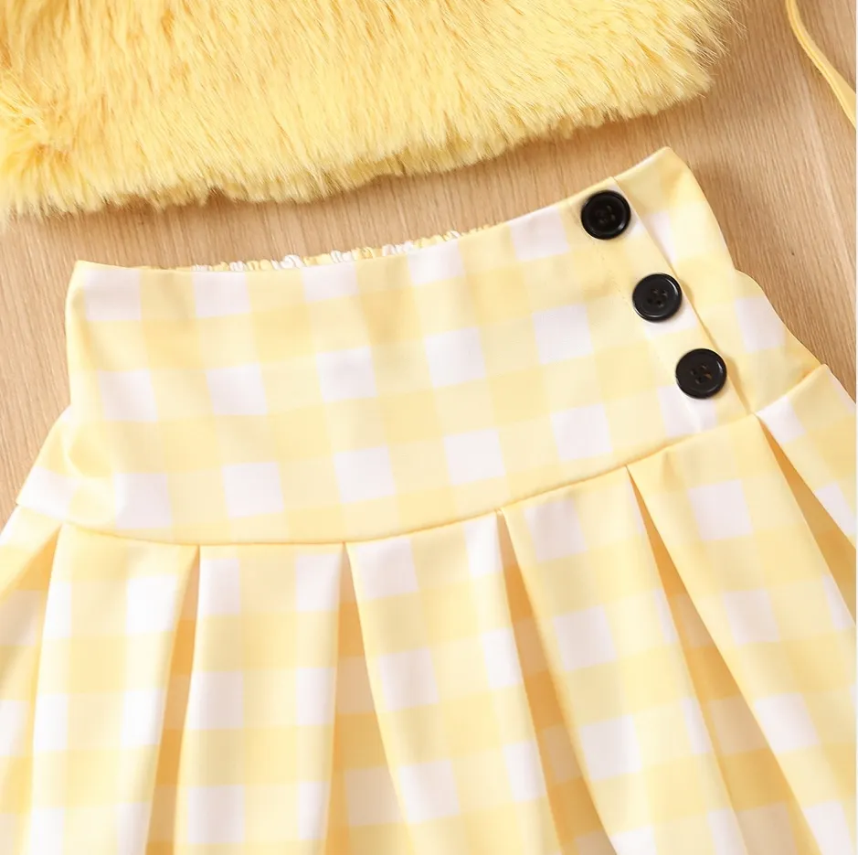 Order the Girls' Fur Sling Solid Color Fur Button Pleated Skirt Bag today and give her the perfect balance of cuteness and fashion flair!