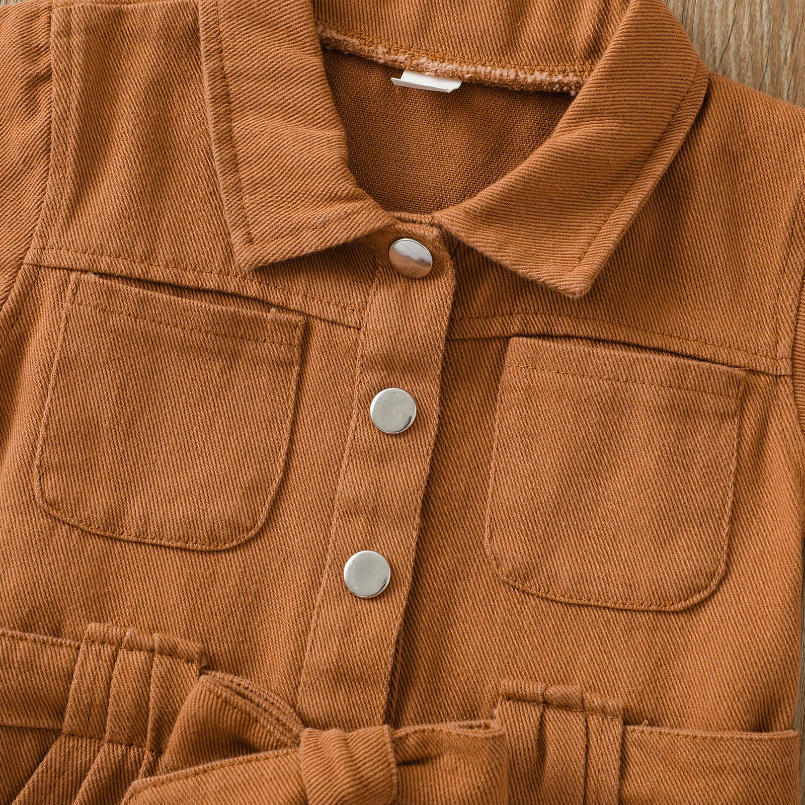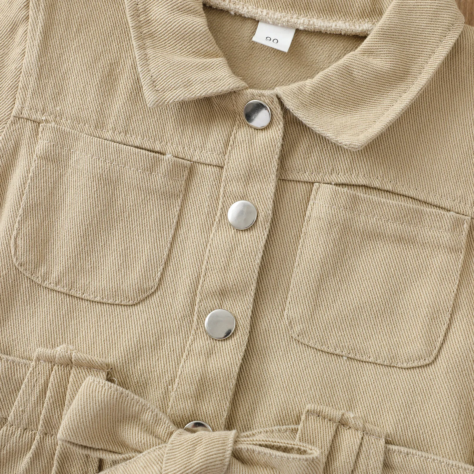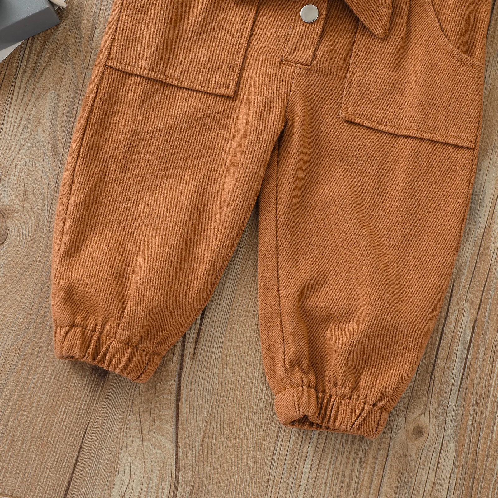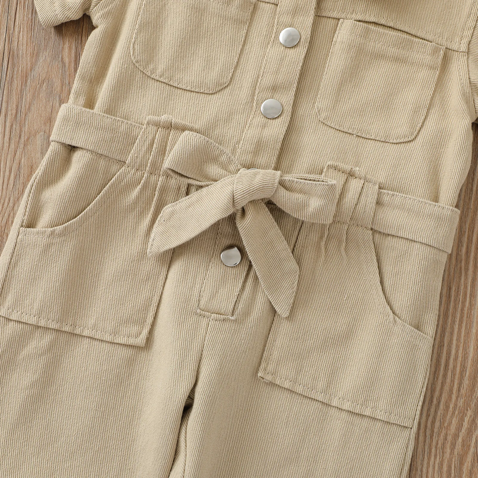 This jumpsuit features a classic lapel collar, adding a touch of sophistication to your child's casual wardrobe. The sleek, tailored cut combined with the trendy design elements, such as the button-up front and practical side pockets, gives this jumpsuit a chic, modern look. The versatile design can easily be dressed up or down, making it a must-have for both casual outings and dressier occasions.