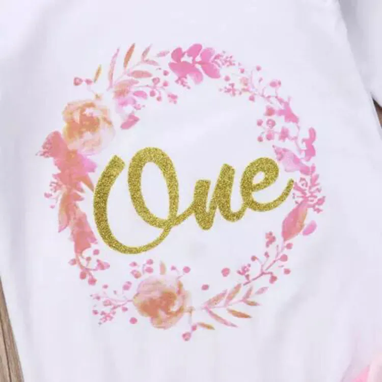 H1: Stylish Girls' Letter Long Sleeve Flounced Sleeve Romper Mesh Skirt Outfit