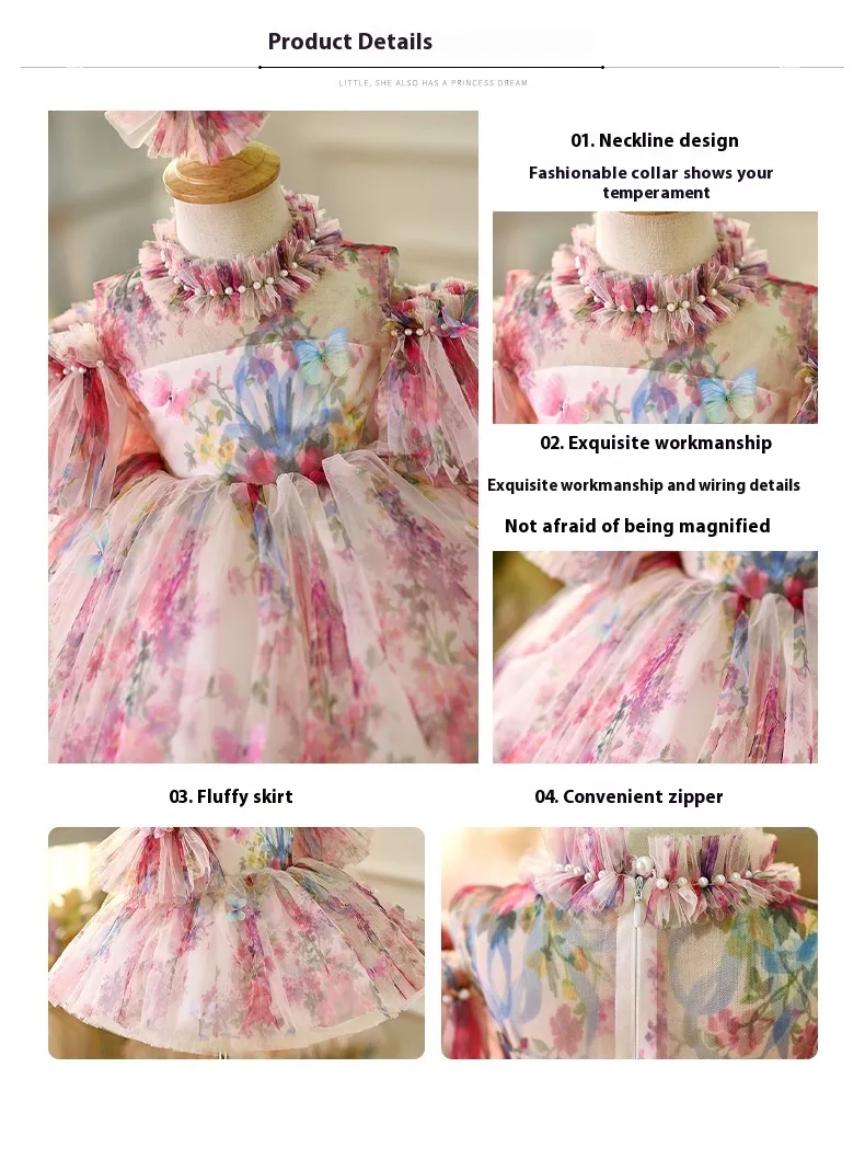 The Girl's One Year Old Celebration Dress Princess Dress is the perfect choice to celebrate your little one’s first year in style. With its luxurious fabric, elegant design, and delicate details, this dress ensures that your child will look and feel like a princess on her special day. Whether for her first birthday party, family photos, or other special occasions, this dress offers both comfort and beauty. Make her celebration even more memorable with this timeless, elegant dress.