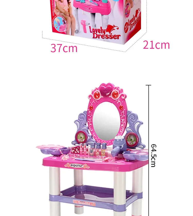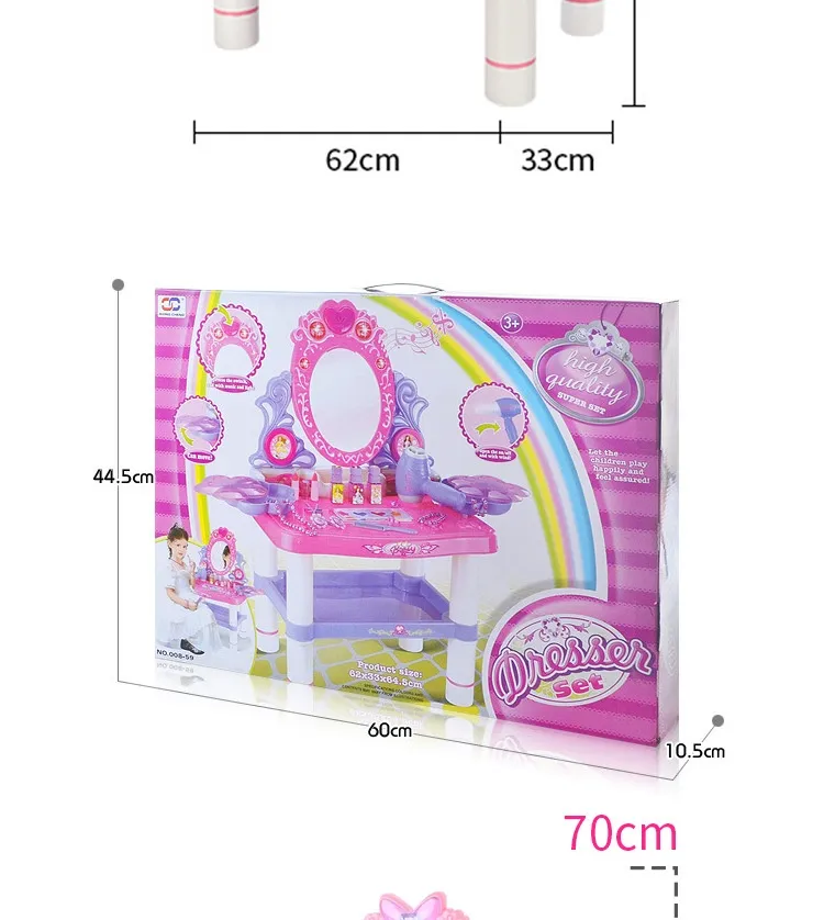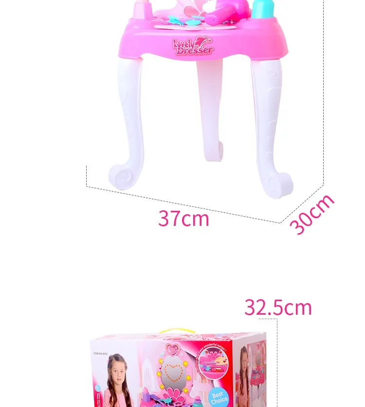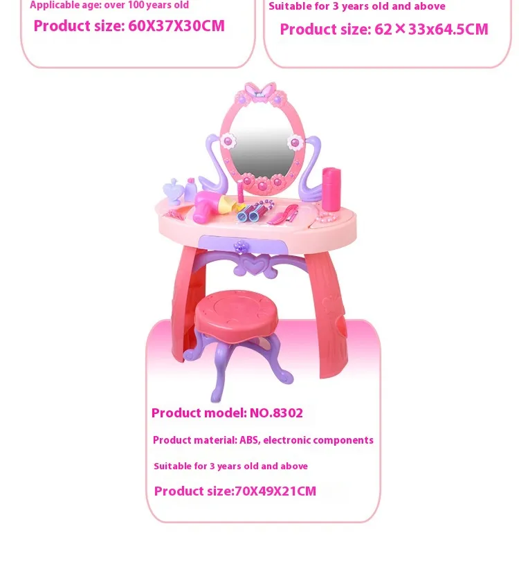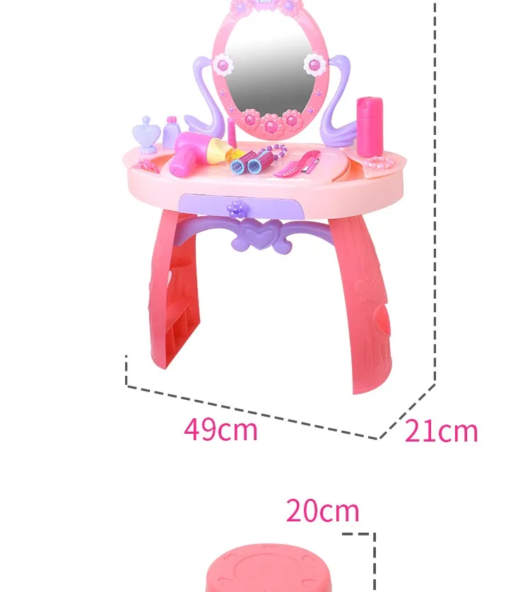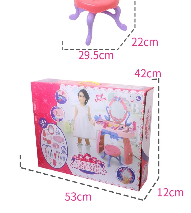The Girls Playing House Children's Makeup Dressing Table Toys is the perfect playset for young children who love to engage in imaginative role-playing and explore the world of beauty and self-care. Designed to mimic a real-life dressing table, this interactive toy offers a fun and educational experience, encouraging creativity and independent play. With its vibrant design and assortment of makeup accessories, children can pretend to be a makeup artist, fashion stylist, or beauty expert, all while developing essential motor skills, social abilities, and a sense of responsibility. Ideal for girls aged 3 and up, this dressing table playset provides endless hours of fun and learning.