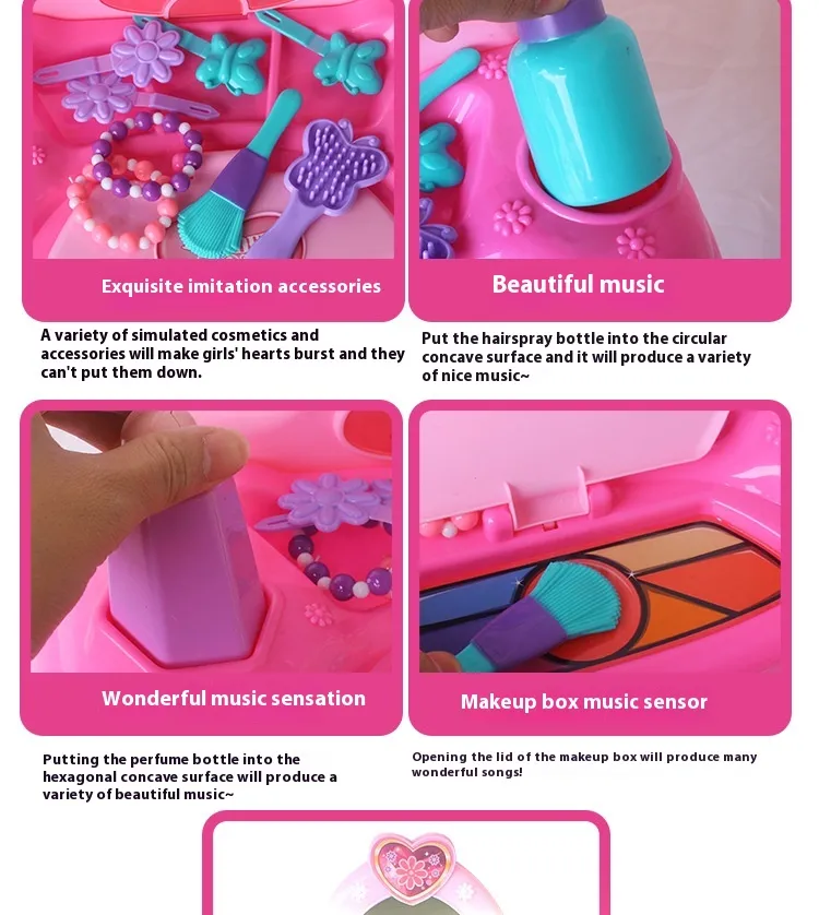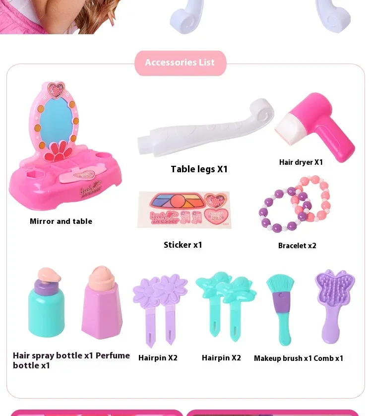 The Girls Playing House Children's Makeup Dressing Table Toys is more than just a fun playset—it’s a tool for developing essential life skills while having fun. From fostering creativity and imagination to improving social skills and motor development, this interactive toy encourages children to explore the world of beauty and self-care in a safe and enjoyable way. Whether they’re playing solo or with friends, this dressing table will provide endless hours of entertainment, making it the perfect addition to any child's toy collection.