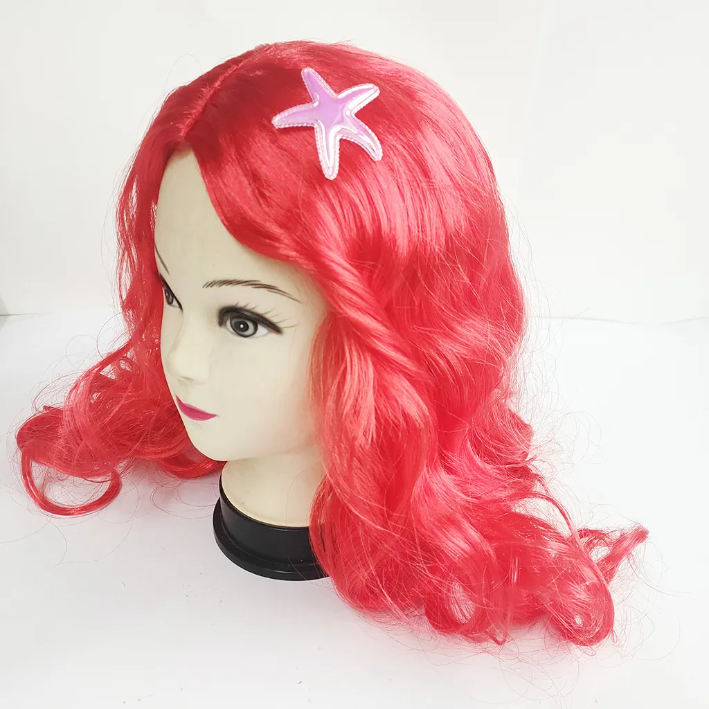 The mermaid wig is designed to add a touch of magic and whimsy to your child's costume. Featuring long, flowing locks in enchanting shades of vibrant colors like ocean blue, shimmering teal, or pastel pink, this wig is perfect for completing a mermaid or princess look. The natural-looking waves and curls give the wig a realistic appearance, allowing your little one to fully immerse themselves in their favorite fairy tale character.