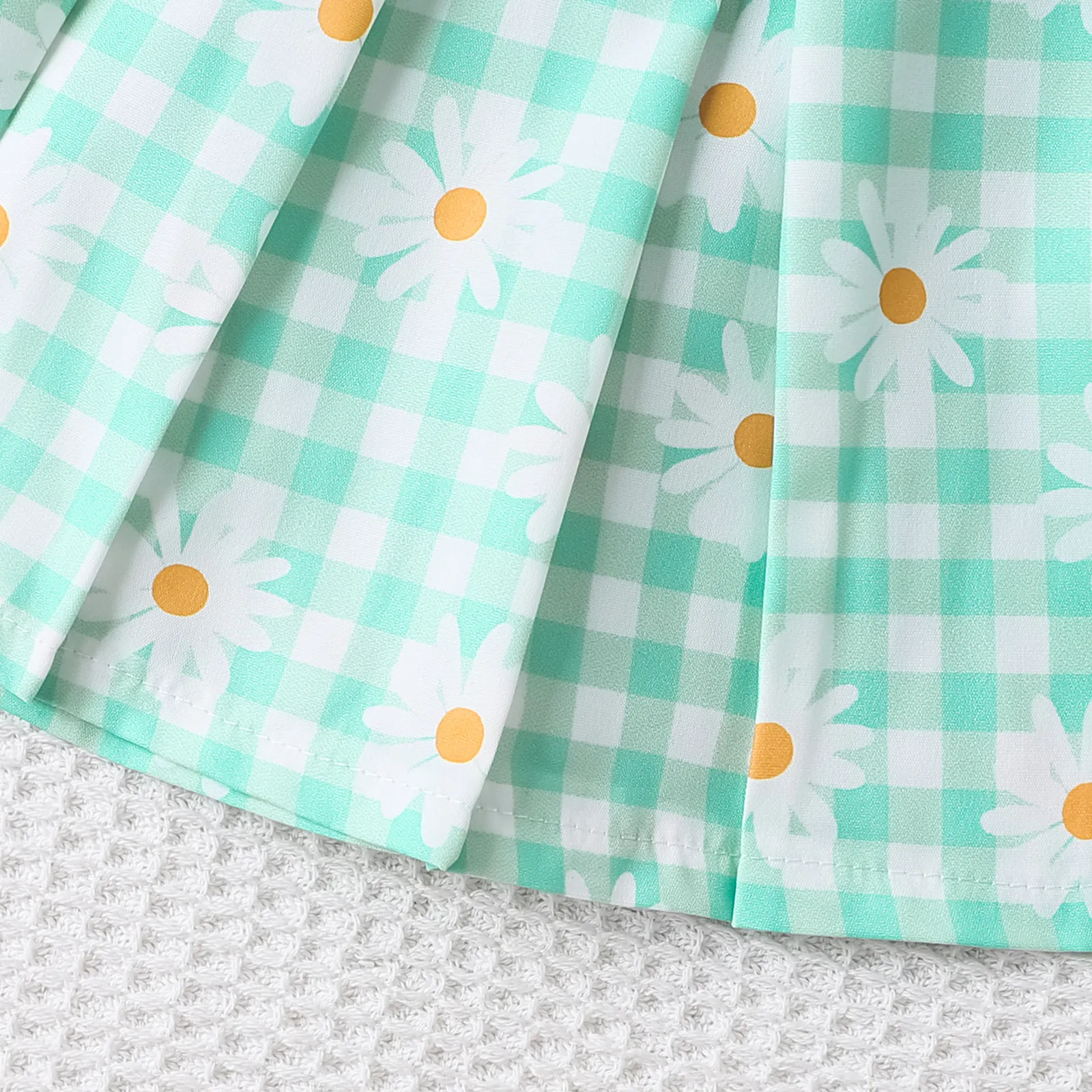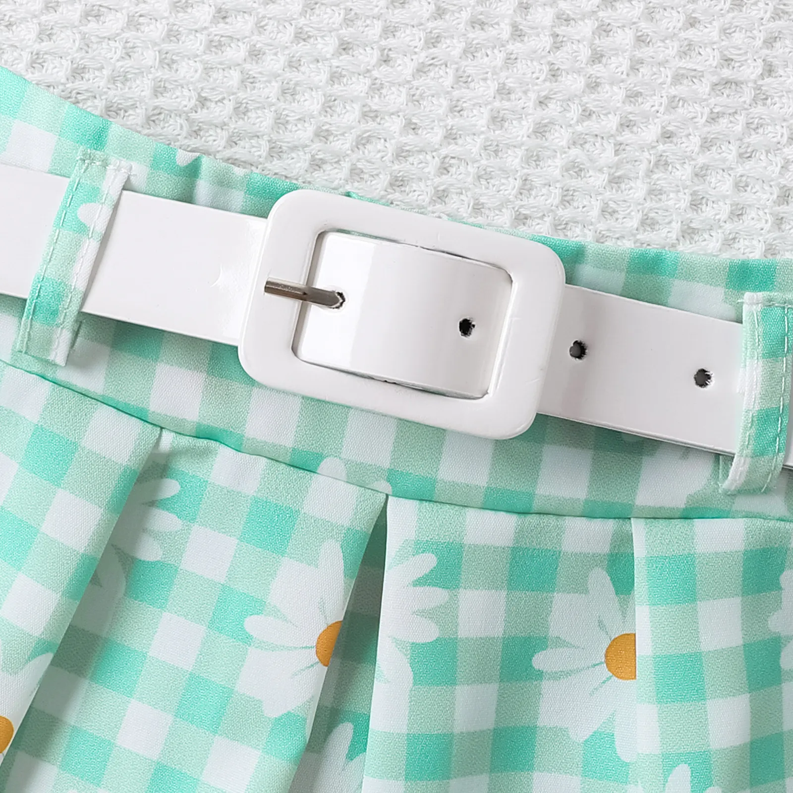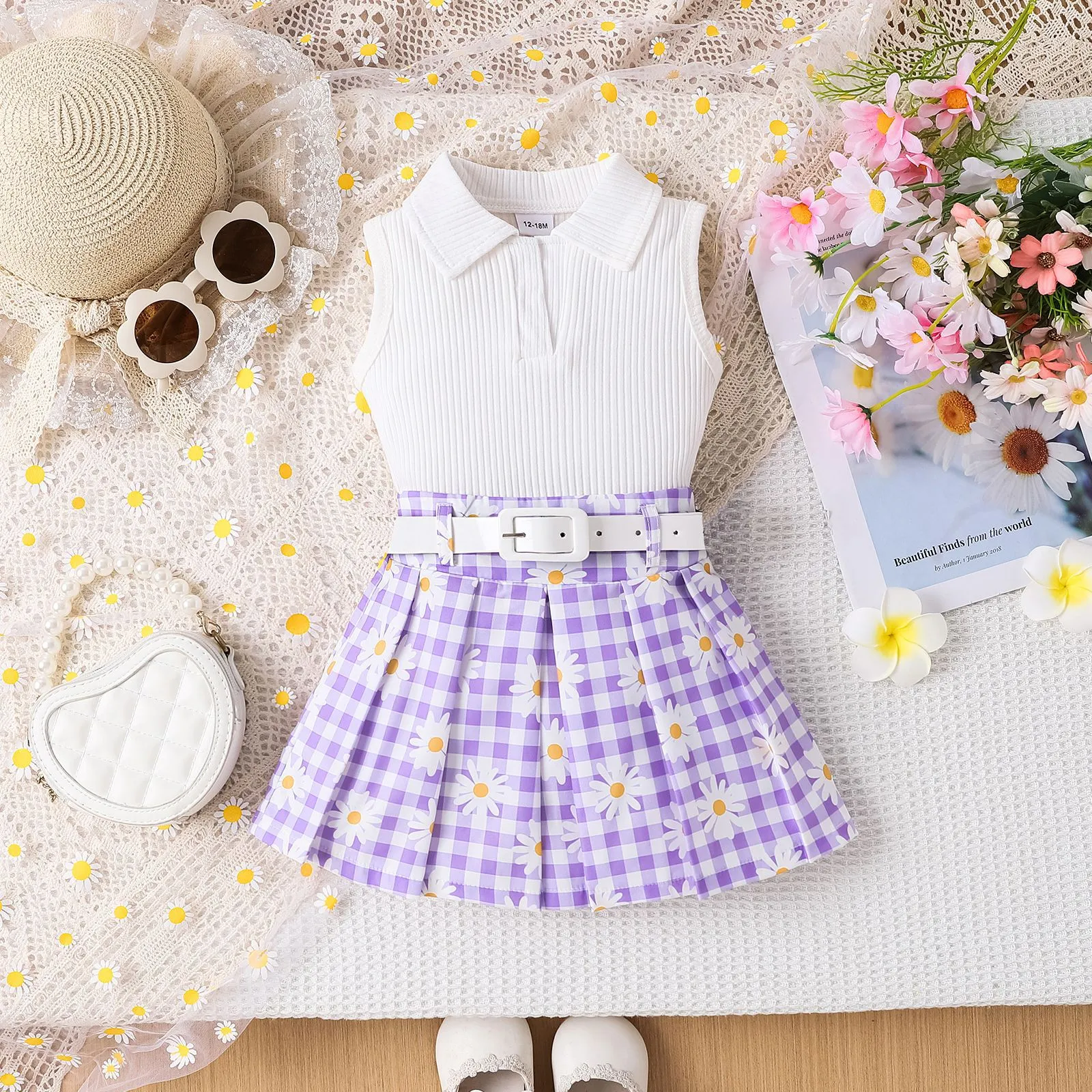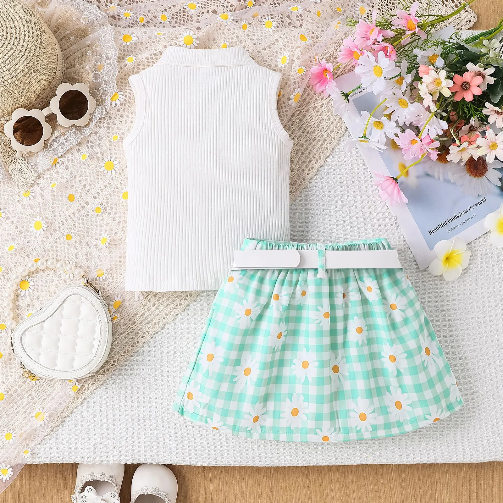 - Trendy Design: Sleeveless striped top and daisy-patterned plaid skirt for a stylish, playful look.