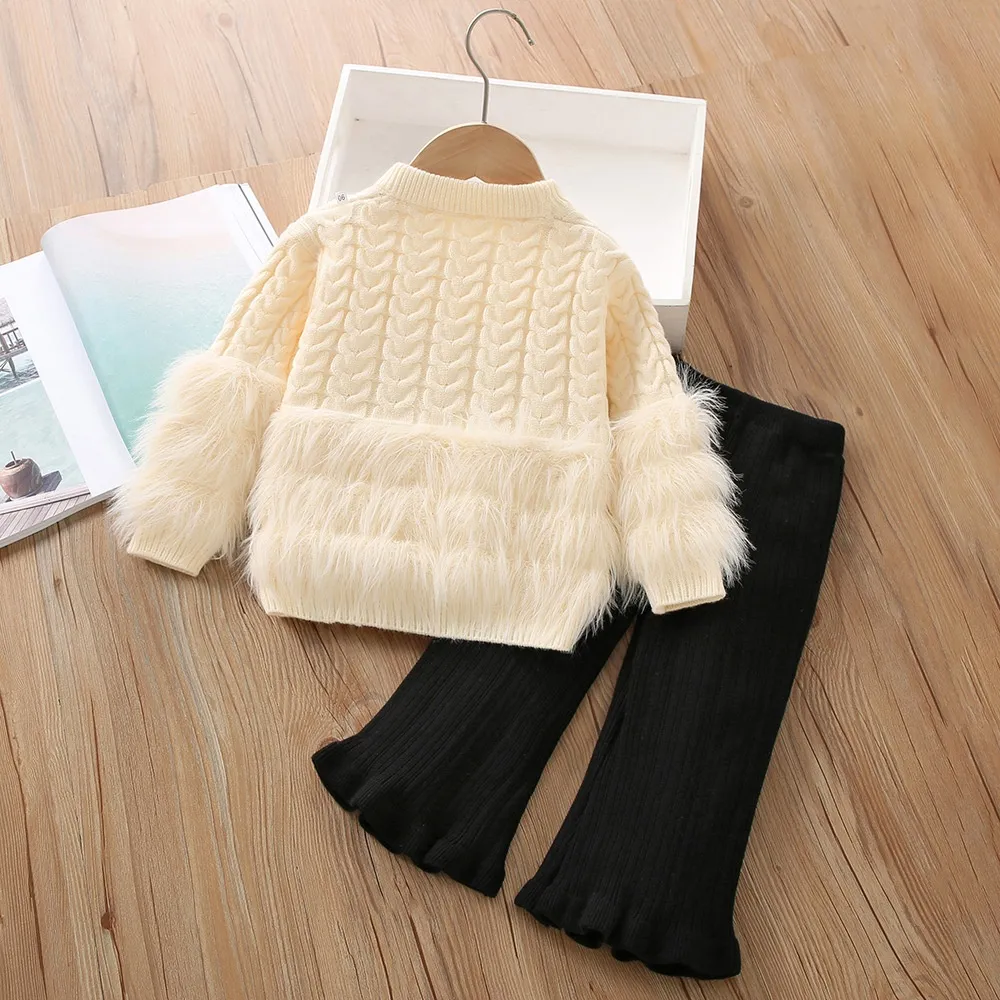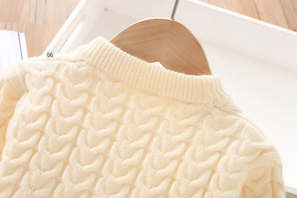 The twist-knitted design not only provides added warmth but also brings a stylish and textured look to the sweater suit. The cute and trendy design makes this set versatile enough for everyday wear, while also elevating your child's fashion game. Whether worn at home, at school, or for a casual outing, this sweater suit is sure to turn heads and keep your little one looking stylish.