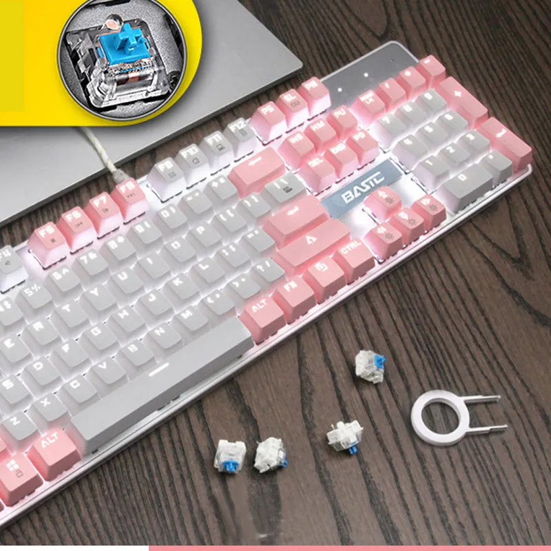 Girly pink mechanical keyboard 104 keys green axis black axis red axis wired
