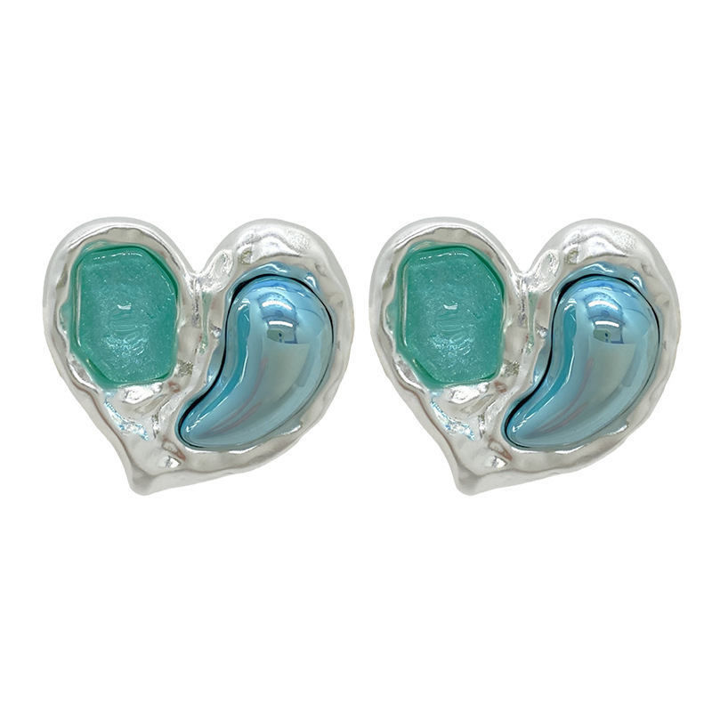 Glacier Blue Green French Retro Resin Love Metal Earrings