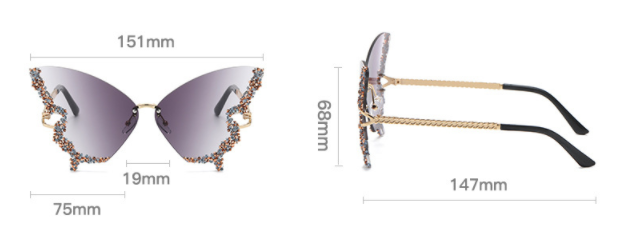 - Exquisite Butterfly Design: The unique butterfly-shaped lenses are adorned with sparkling diamond accents, offering a glamorous and eye-catching look.