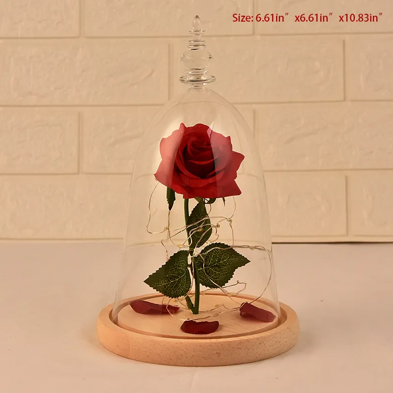 The rose and LED lights are encased in a high-quality glass dome, providing protection while allowing full visibility. The dome's sleek design adds a touch of sophistication, making it a standout piece in any room.