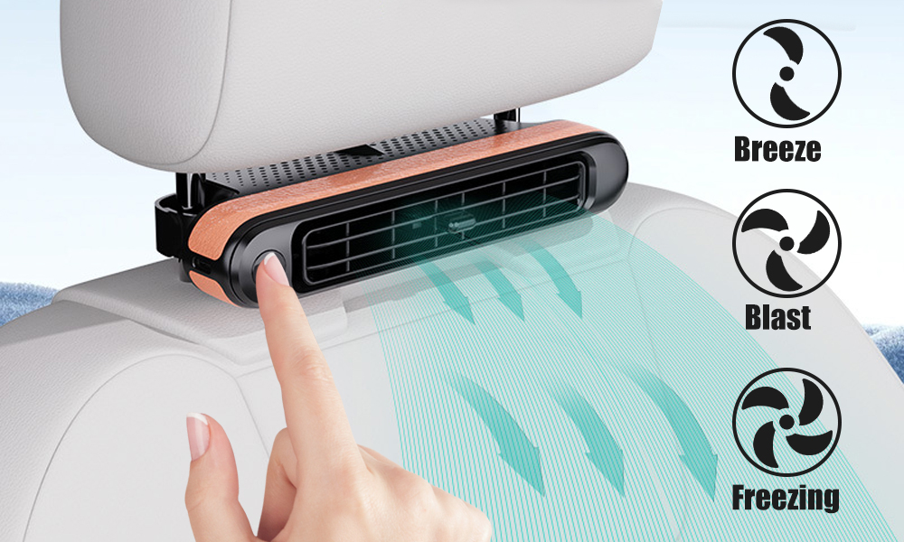 This unique product is designed to be easily attached to the headrest of any car seat, providing a refreshing breeze for both front and rear