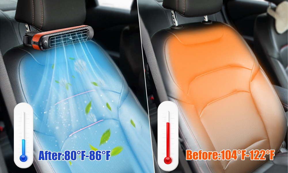 - 2 Modes: Designed for use with car seats, our car fan mounts in front of the car seat to provide cool airflow to your back or the backs of your passengers. Mounted behind the car seat, it provides a cozy breeze for your loved ones and furry friends or passengers.