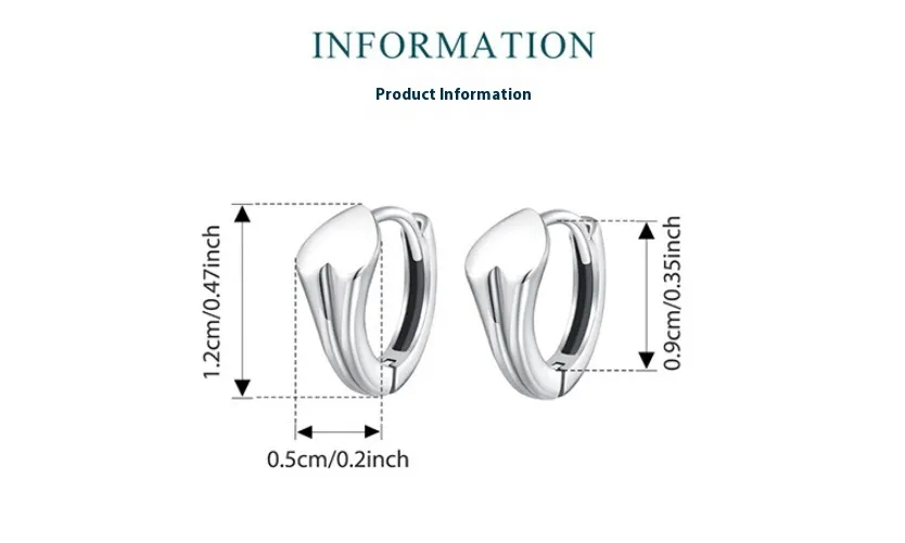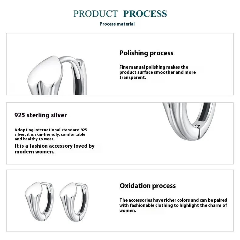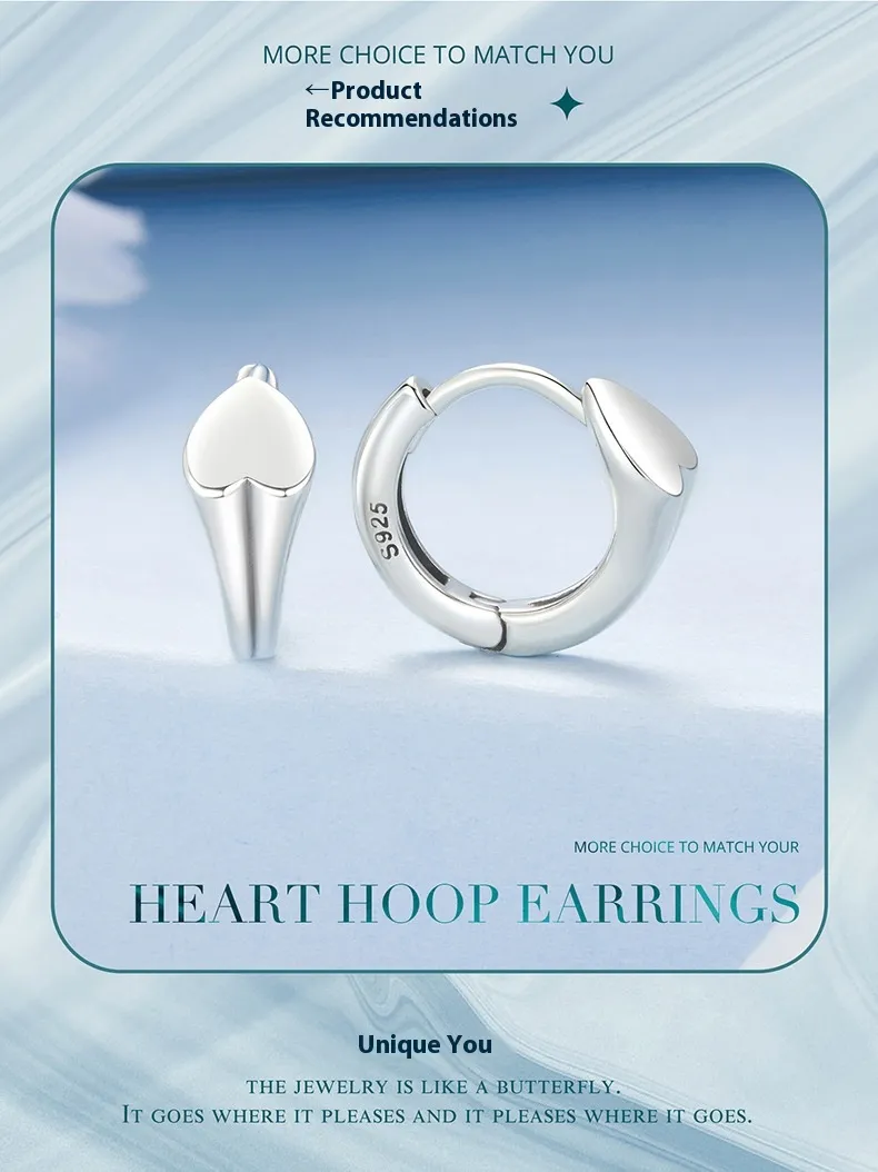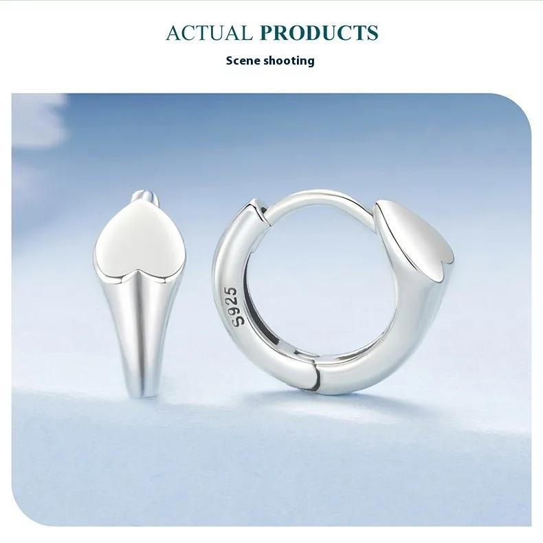 Glossy Love Heart Earrings S925 Sterling Silver Fashion Ear Clips