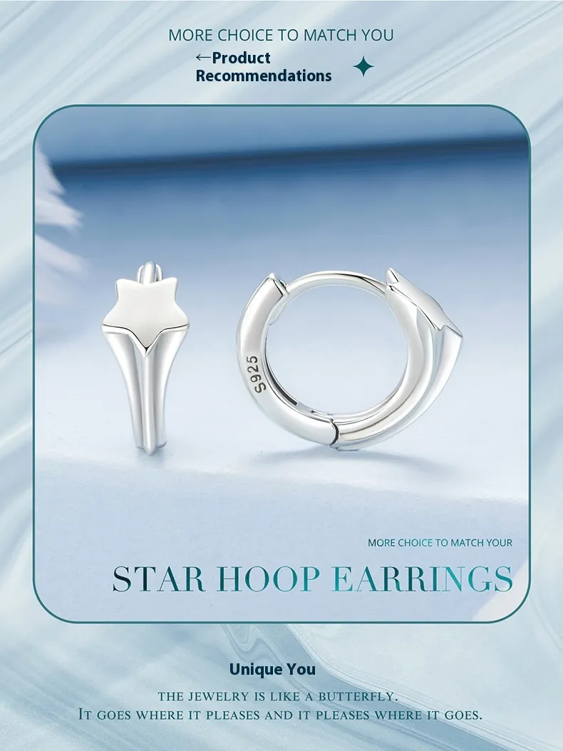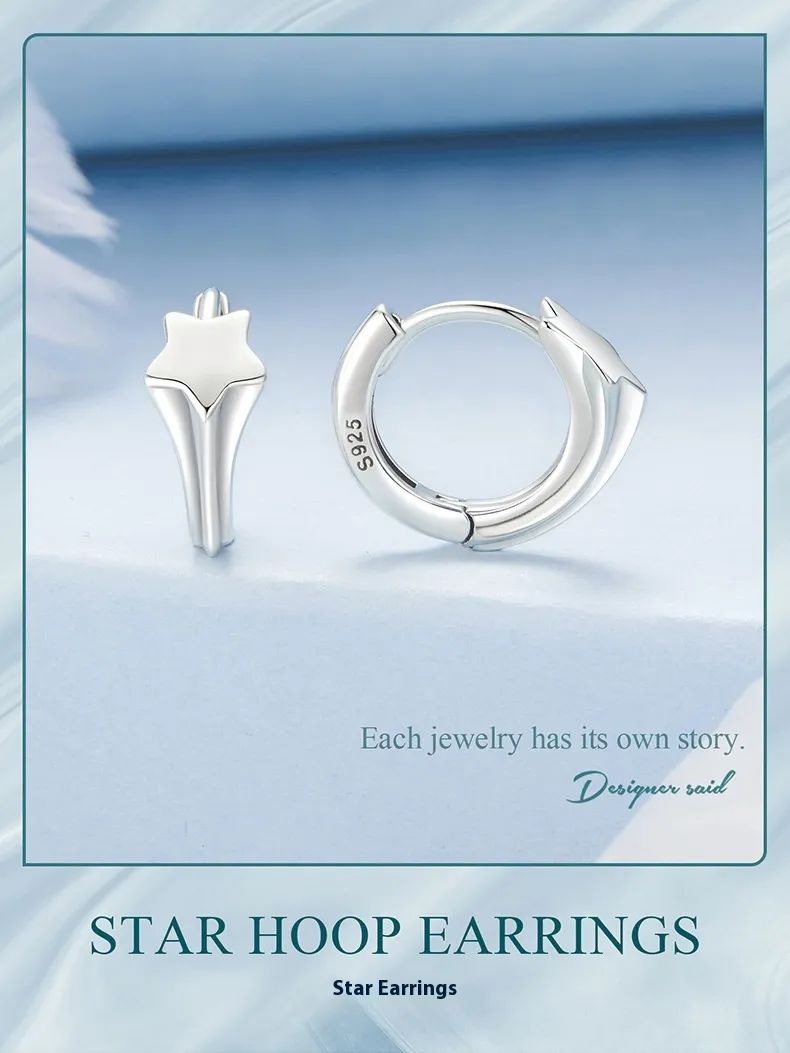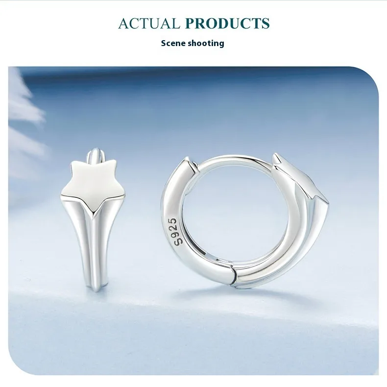 Glossy Pentagram Ear Clip S925 Sterling Silver Fashion Earrings