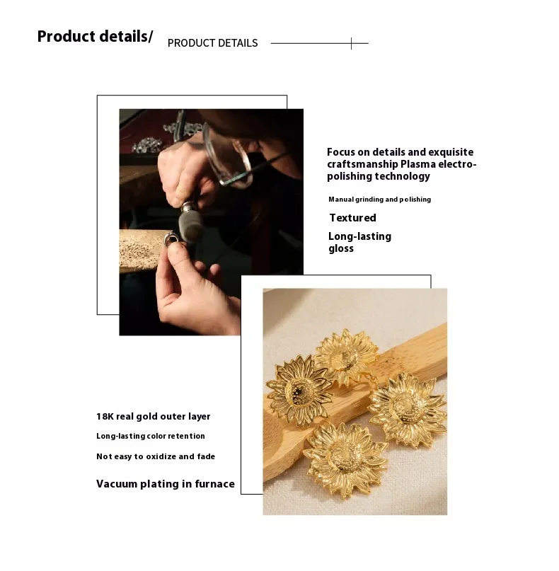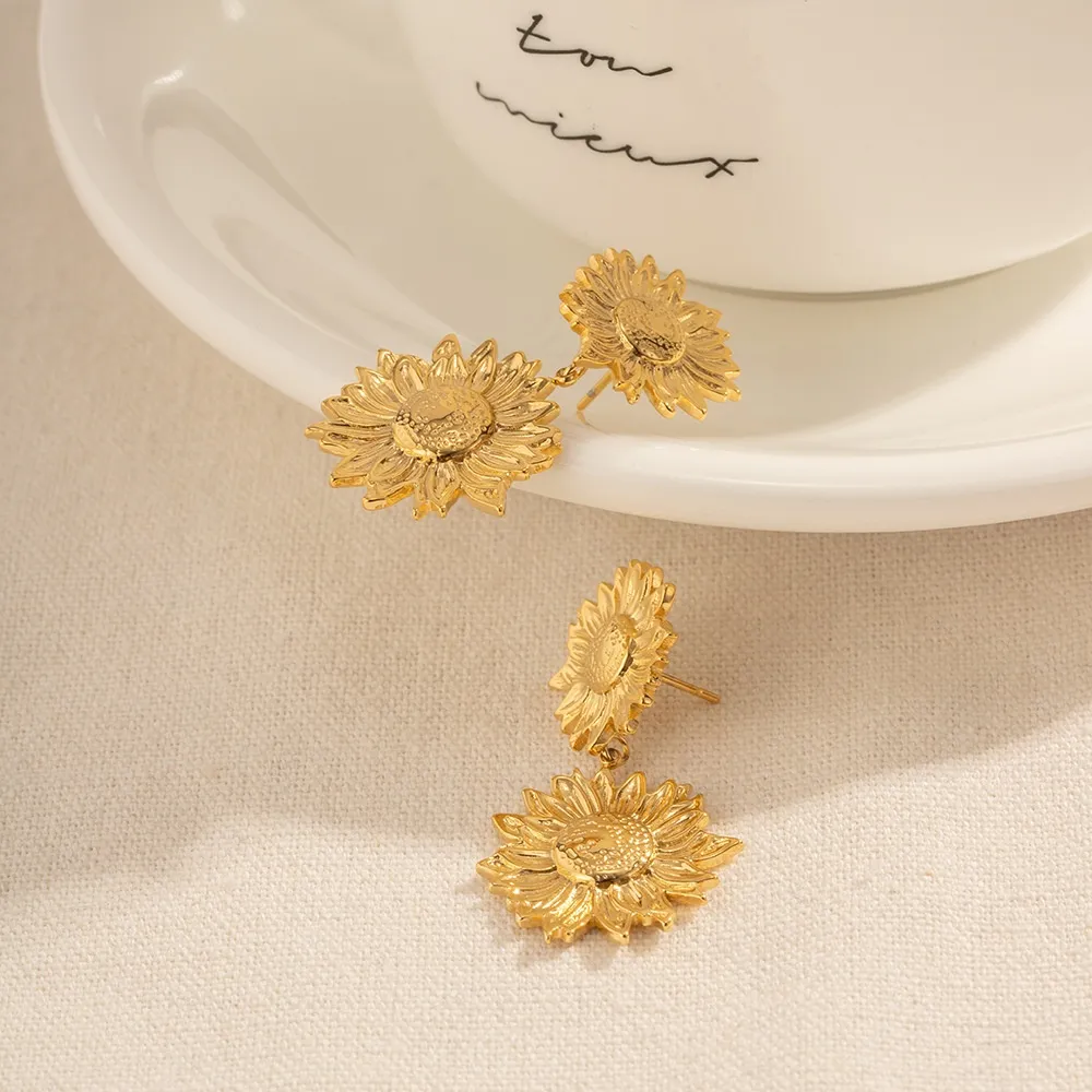 Gold Earrings Vintage Metal Sunflower