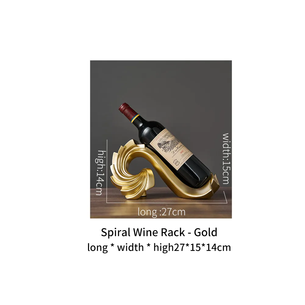 The warm gold finish and fluid spiral shape are not just visually striking, but also space-efficient, allowing you to store multiple bottles in a compact and attractive display. Its minimalist design ensures it complements any decor style, from modern and industrial to more traditional interiors.