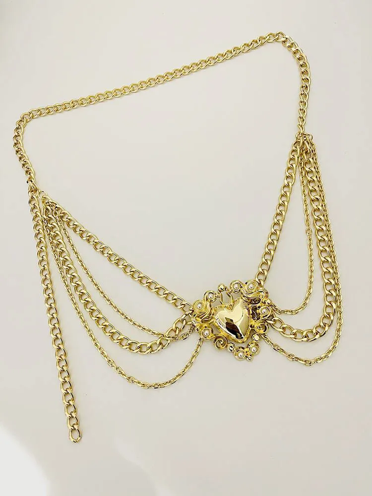 Add Elegance and Romance to Your Look with the Gold Multi-layer Chain Love Waist Chain