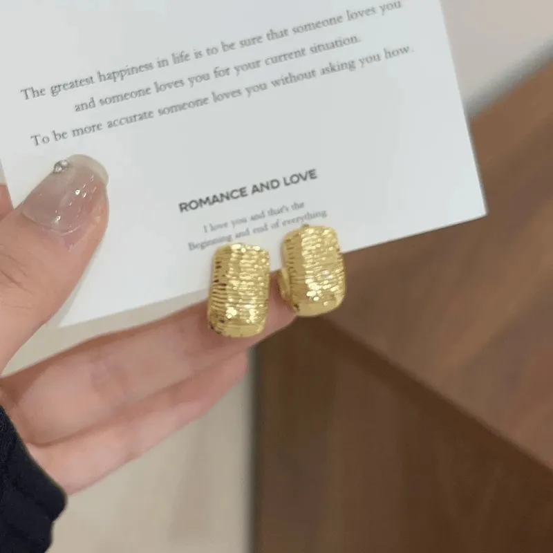 Gold-plated Striped Wide Face Ring Ear Button Earrings High Sense