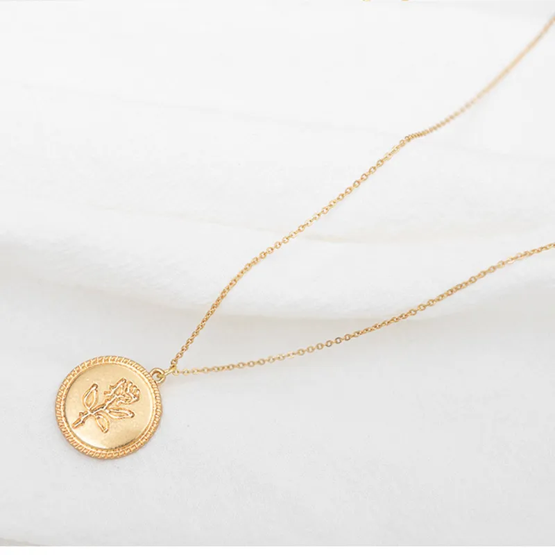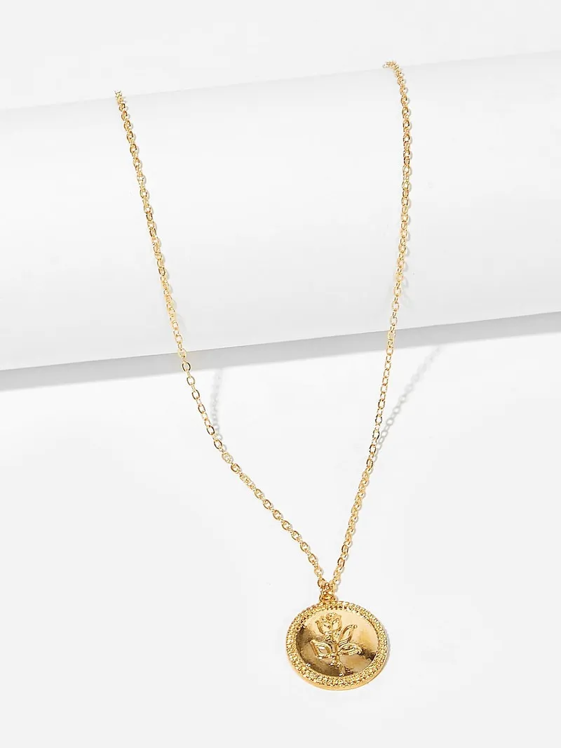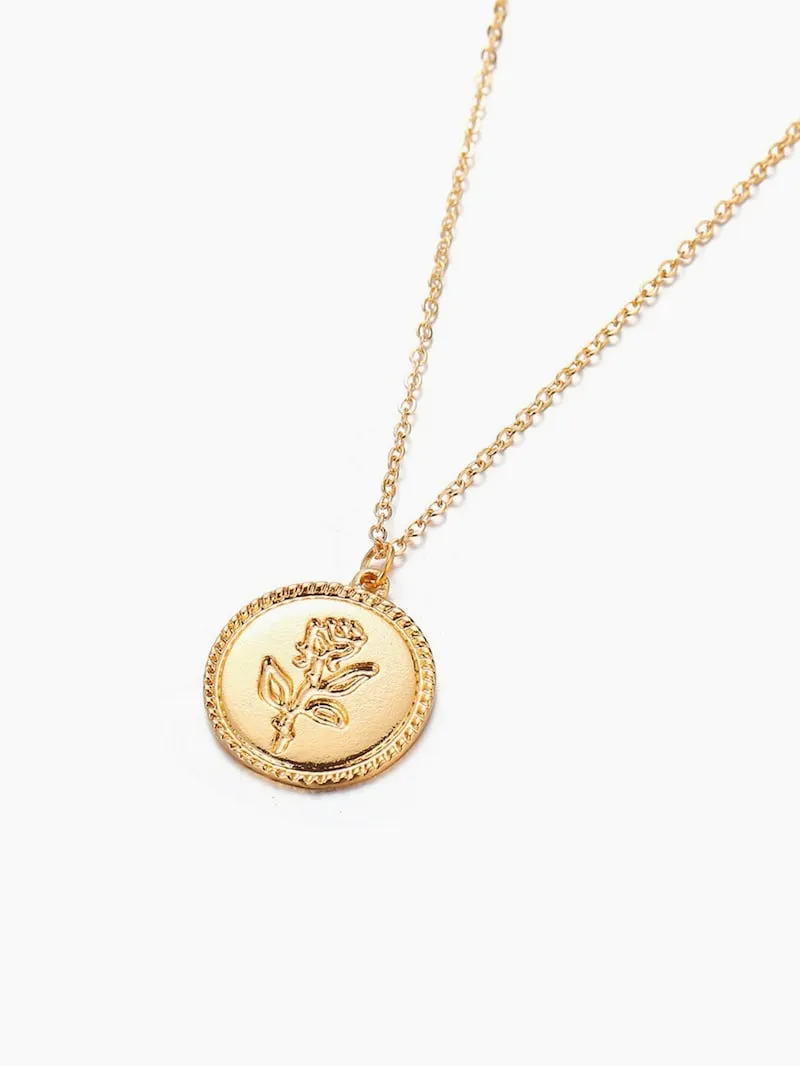 Golden Coin Rose Necklace