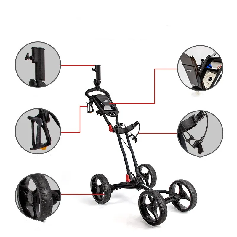 H1: Golf Course Cart Four Wheel Aluminum Alloy Foldable with Umbrella Rack – The Perfect Companion for Every Golfer