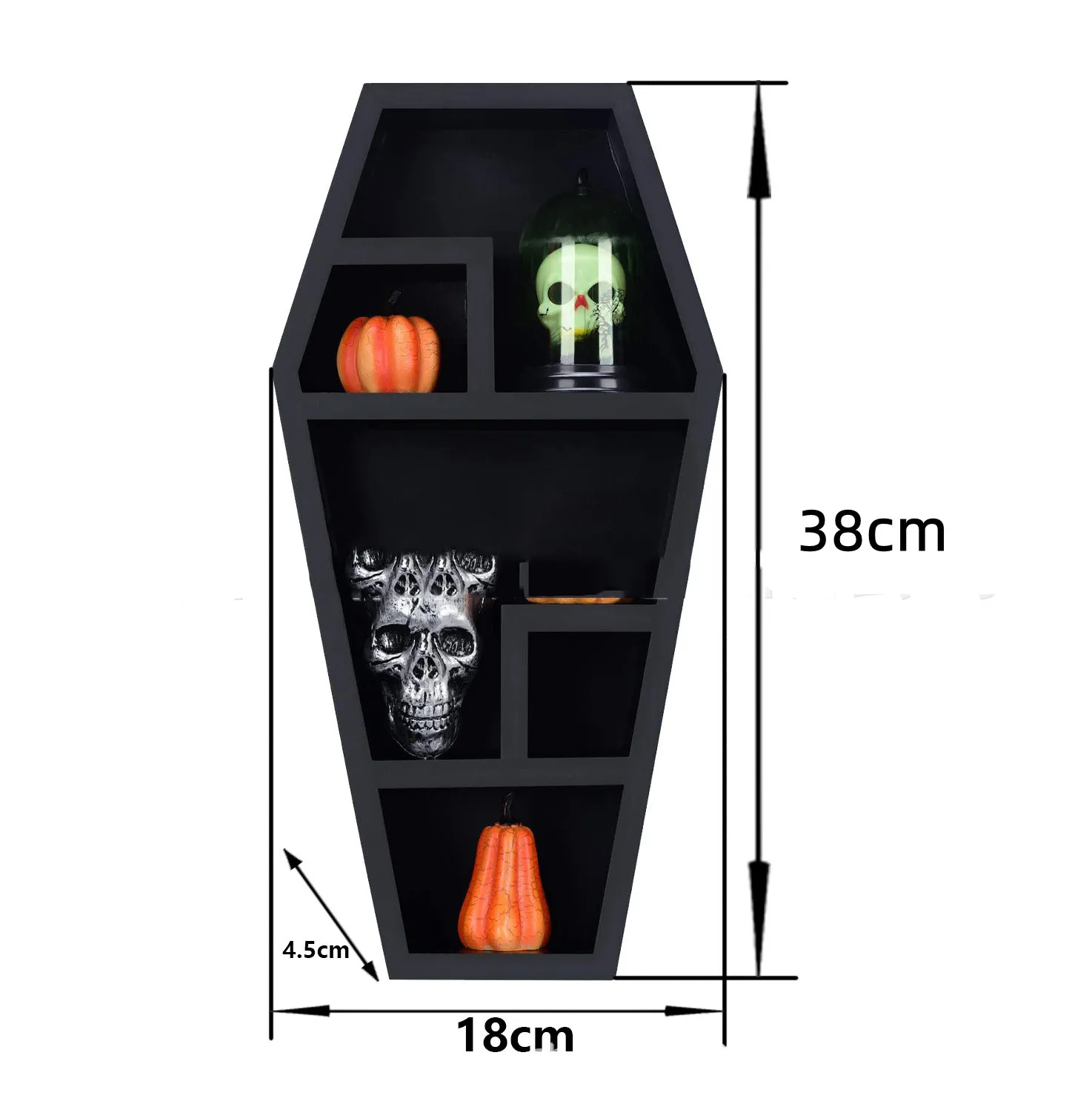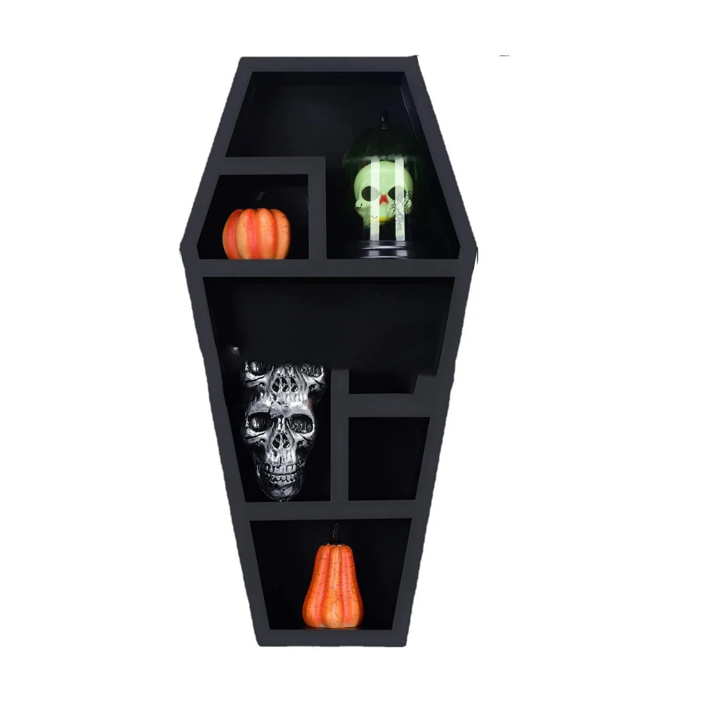 Unique Coffin Shape: The shelf is designed in the shape of a coffin, making it an iconic piece that immediately draws