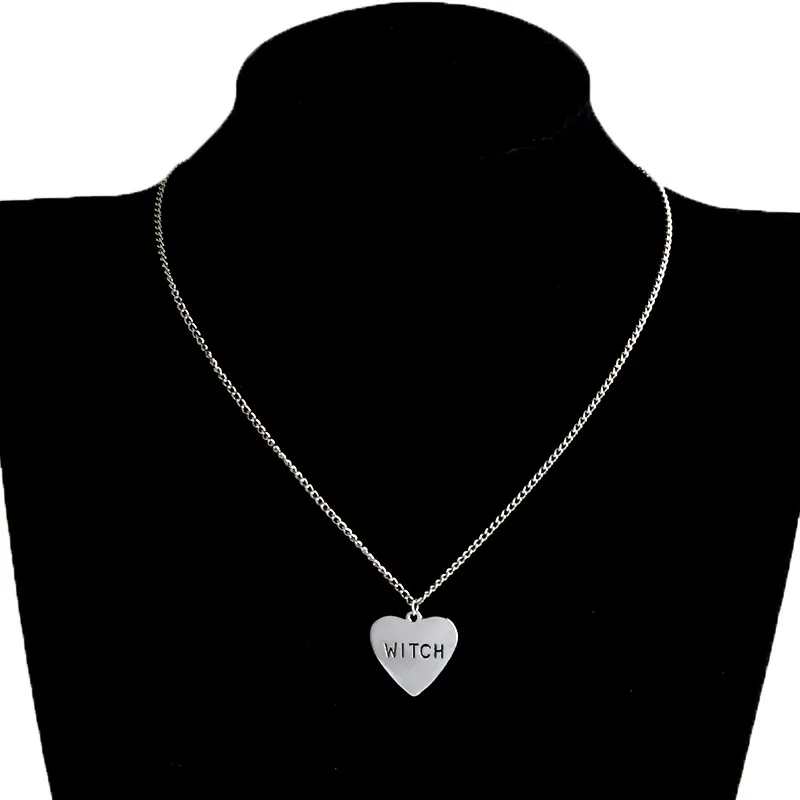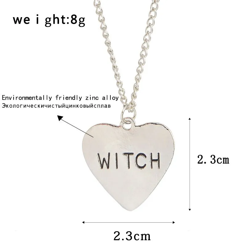 Gothic Punk Witch Heart Necklace Halloween Jewelry Gifts