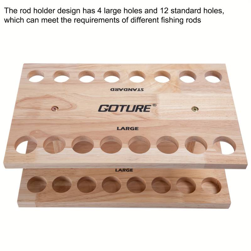 The Goture 16 Slots Square Fishing Rod Holder is a must-have for any angler looking to organize and protect their fishing rods. Made from durable wood and featuring 16 adjustable slots, this holder offers both practicality and style. Perfect for home use or as a gift for fishing enthusiasts, this rod holder helps keep your gear neat, accessible, and in optimal condition for all your fishing trips.