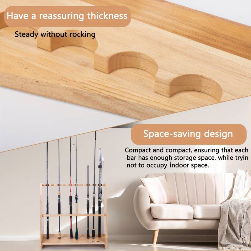 Crafted from high-quality wood, this fishing rod holder is designed for durability and stability. The solid construction ensures that the holder can support the weight of multiple rods without wobbling or tipping over.
