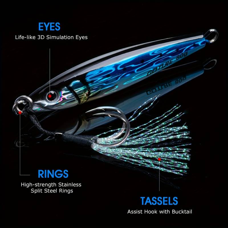 The jigs are designed for quick drop action, which is ideal for deep-sea fishing or vertical jigging. This feature is perfect for catching aggressive species like tuna, snapper, and salmon, ensuring that you can target deep-water fish effectively.