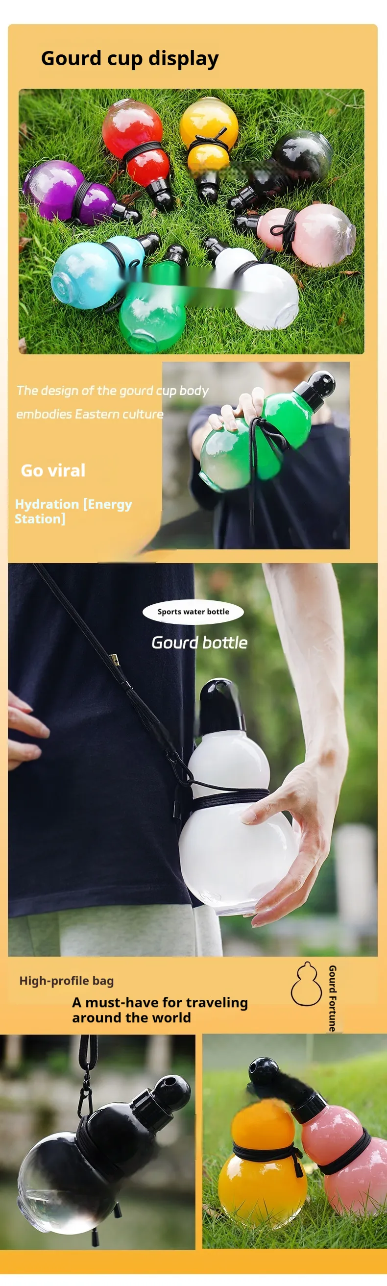 Beyond aesthetics, the bottle supports practical hydration needs. It is suitable for use at home, work, travel, or leisure activities, offering a reusable solution that aligns with eco-conscious living. The gourd shape also makes it an interesting conversation piece, blending lifestyle expression with utility.