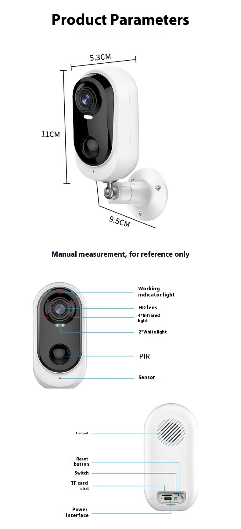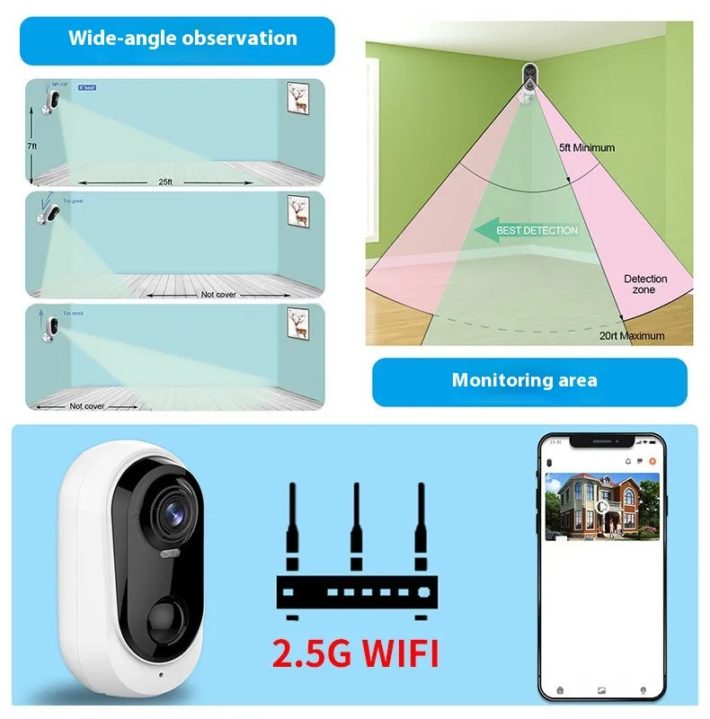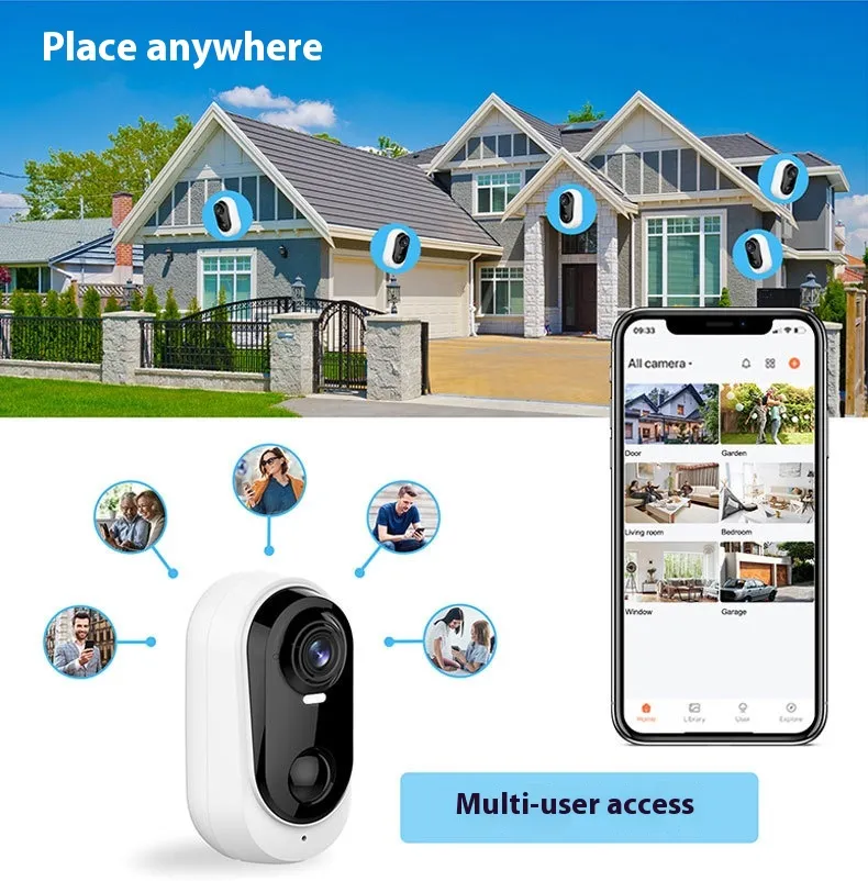 Forget about messy cables and power outlets. This smart camera runs on a rechargeable battery, allowing you to install it anywhere—indoors or outdoors—without needing to plug it into the mains. Its cordless design provides maximum flexibility and convenience.